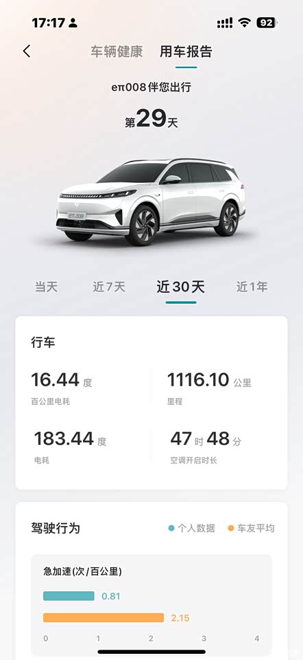 这车最棒的还是底盘,在我试驾的车里只有别克e5能比008稍微好点,其他深蓝s7、零跑c11、c10、哪吒L都要差一个档次,车虽然很大,但是并没有开船的感觉,指向精准指哪打哪,转弯侧倾抑制非常到位,跟我之前的小昂克赛拉差不多或者更好,对于我来说,悬挂不软也不硬,刚刚好,所以各位买车一定要试驾对比对比,真的很不错。 再来说一下电耗,我买的是纯电,提车的时候,4s帮充满了电,我开了有300公里出头,电量剩了15%,感觉有点费电,也可能刚提车,激烈驾驶、同事朋友试车比较多,开着空调在车上研究车机也比较多,表显平均电耗在18.5度百公里,实际应该在23度左右,总体不是很满意。不过后续的使用中,对008了解的越来越多,脚法也越来越精湛,目前表显电耗是15度左右,满电实际应该能跑差不多500公里吧,不及预期,但是也还能接受。 然后是充电,第一次补电我是在快充桩充的,家里附近有个星星充电的充电站,应该是480kw的桩,充008是绰绰有余了,实测15%-75%的充电功率能达到112kw左右,速度还可以,半小时能充到80%左右,应急补电可以了。后续申请了家用桩,我家车位距离配电箱很近,整个安装过程完全免费,开通了峰谷电价,最低4.4毛一度电,充电功率基本在6.3kw,充满的话需要十二三个小时,不过可以预约充电,可以即插即充,非常方面,我