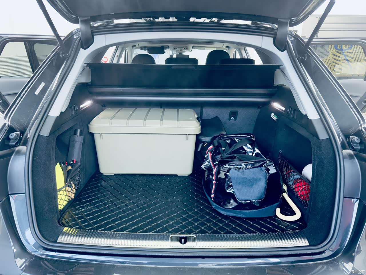 A4 Allroad(2024)的后备箱容积是510L,除去2侧的网兜空间外,并没有下沉式储物(对比蔚来),整体装载能力中规中矩甚至偏小。但四弟标配的电动后备箱挡板是可拆卸的,放倒后排座椅能扩展到1510L,可以变身“年货专用车”。