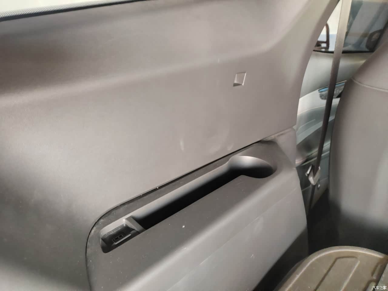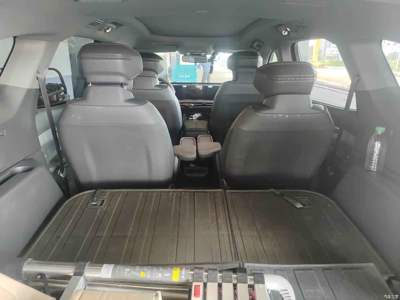 内饰整体还不错,无论是扶手箱和和座椅都很舒服用料也是软质的皮或者仿皮的。二三排可能考虑到三排座椅放倒后的载物需求,所以两侧都是塑料饰板,这个就有点硬了。