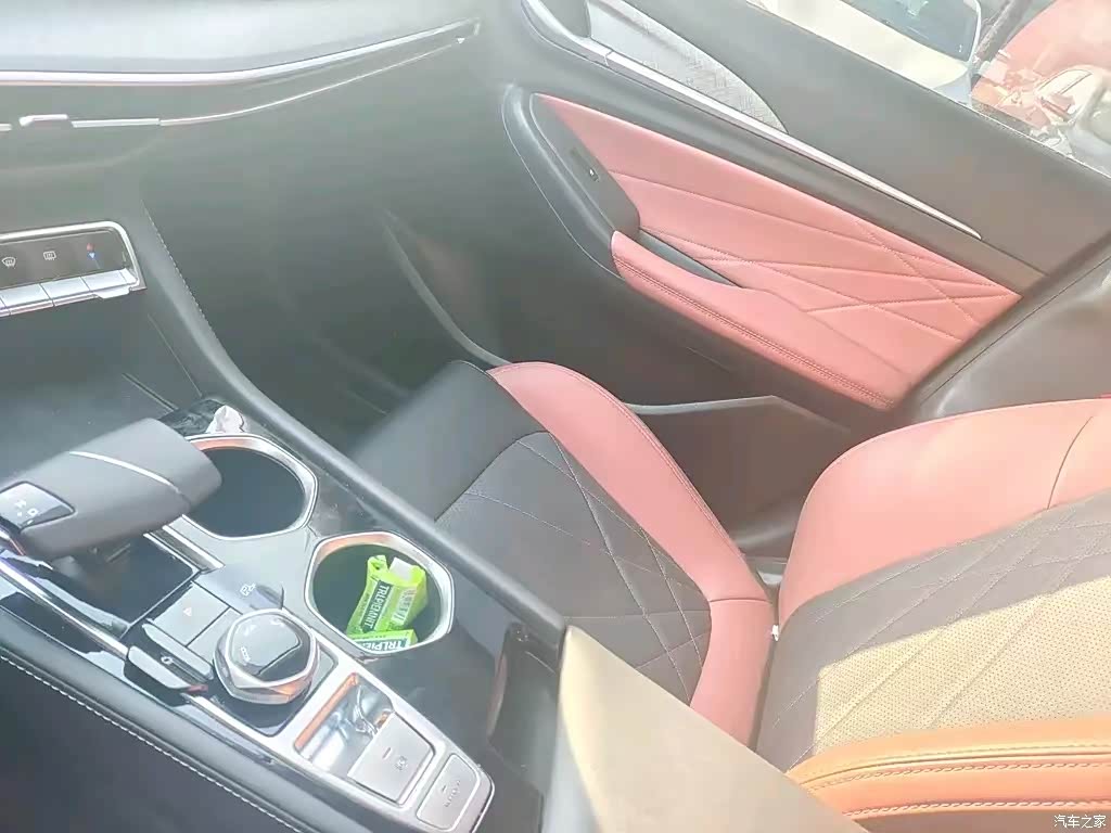 内饰是黑红的,非常好看,也不是纯颜色的看起来非常单一。