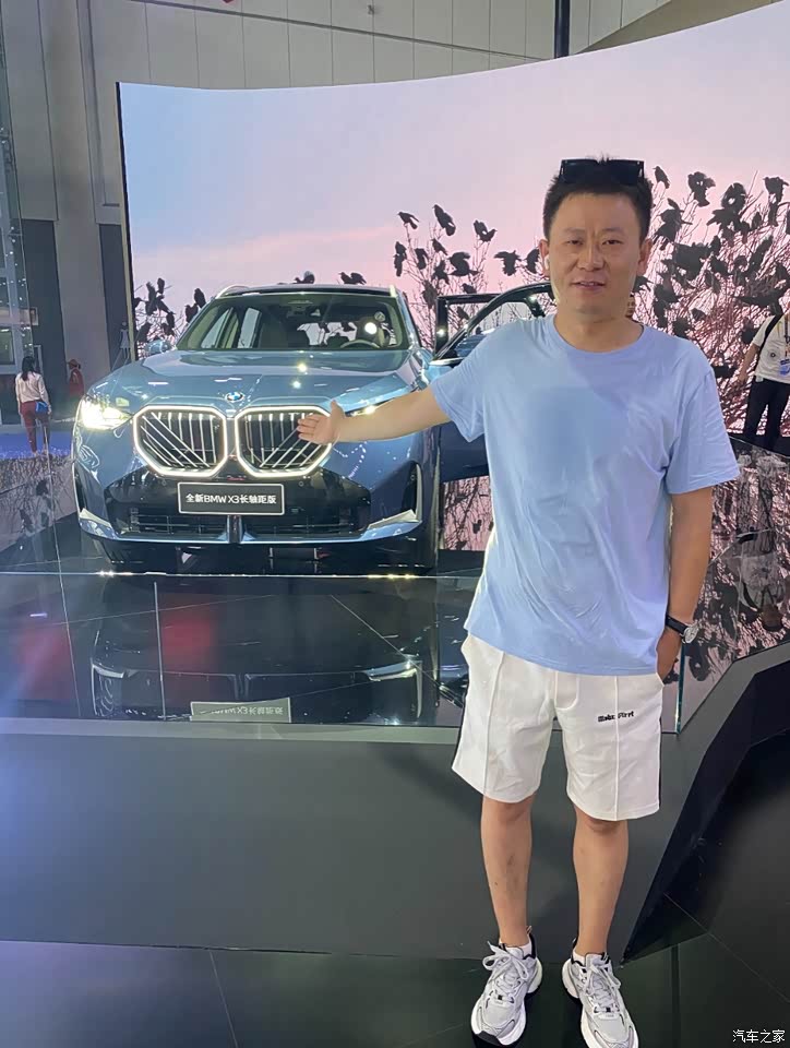 我是一个老款汉兰达车主,从事教育行业工作,目前想换一辆中型尺寸的豪华品牌SUV。 所以借着这次成都国际车展的契机,找朋友们要了两张门票进去好好对比了一番。 目前我比较中意奥迪Q5和宝马X3长轴距这两款。 如果仅针对新X3最满意的点,那肯定是长轴距带来的外观变化和空间变化,还有就是这一套新的汽车设计语音。 就外观造型来说,新X3的正面冲击力太强了,这个超大的双肾进气格栅实在是太好看了。它有竖条和斜条纹的双重加持,看起来科技感满满、气场拉爆,并且新X3用了一圈金属状的装饰条作为点缀,看起来也挺秀气的,不是那种五大三粗的憨憨,我只能说在外观和气场这方面,bba确实有一套对比我以前的老款汉兰达简直是不可同日而语。 新X3的侧面线条看过去是宽大且有力量感,如果把标抠下来,我肯定会认为它是X5,这估计就是设计师想要的那种越级效果吧。 虽然展车不能坐进去体验,但我还是感受到它加长后带来的超大内部空间,我感觉新X3的内部空间和汉兰达比都有过之而无不及。