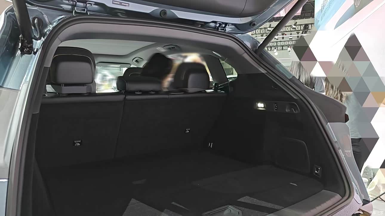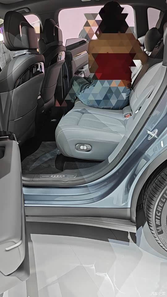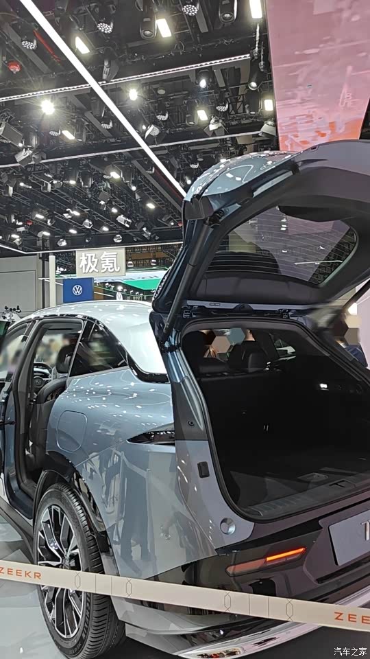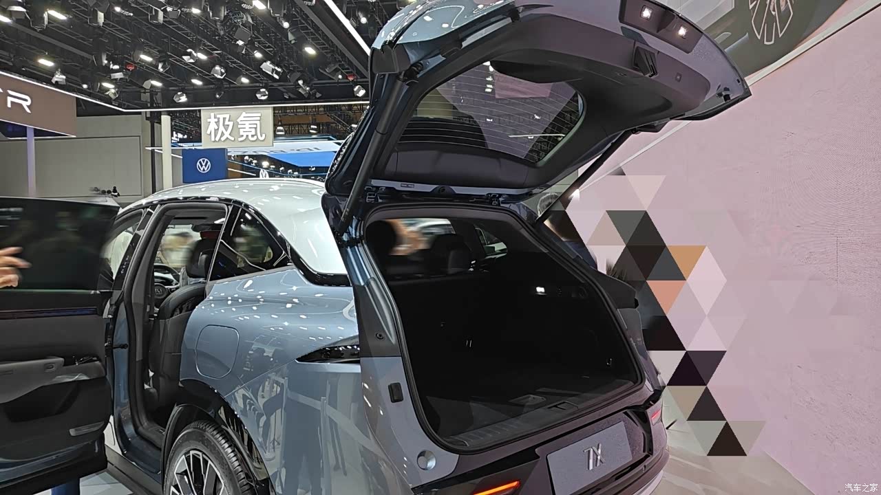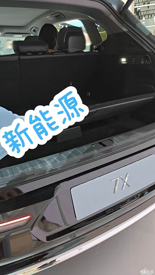 由于看车的人非常多,被拉了警戒线,我只能隔着看了看它的内部空间,并且结合网上的宣传图片和车辆参数看了一下,我觉得7X的空间表现应该还是挺不错的。 这台车的轴距有2925MM,长度也有4825MM,整体的空间大小应该比特斯拉Y大一些,我看后备箱开口也比较大也比较平正,并且我看前后排同时坐人的情况,后排座椅的宽松度还是挺不错的,我看几个女生一起上去在里面翘二郎腿之类的都是完全没有问题,在空间这方面这台车还是比较让人放心的。