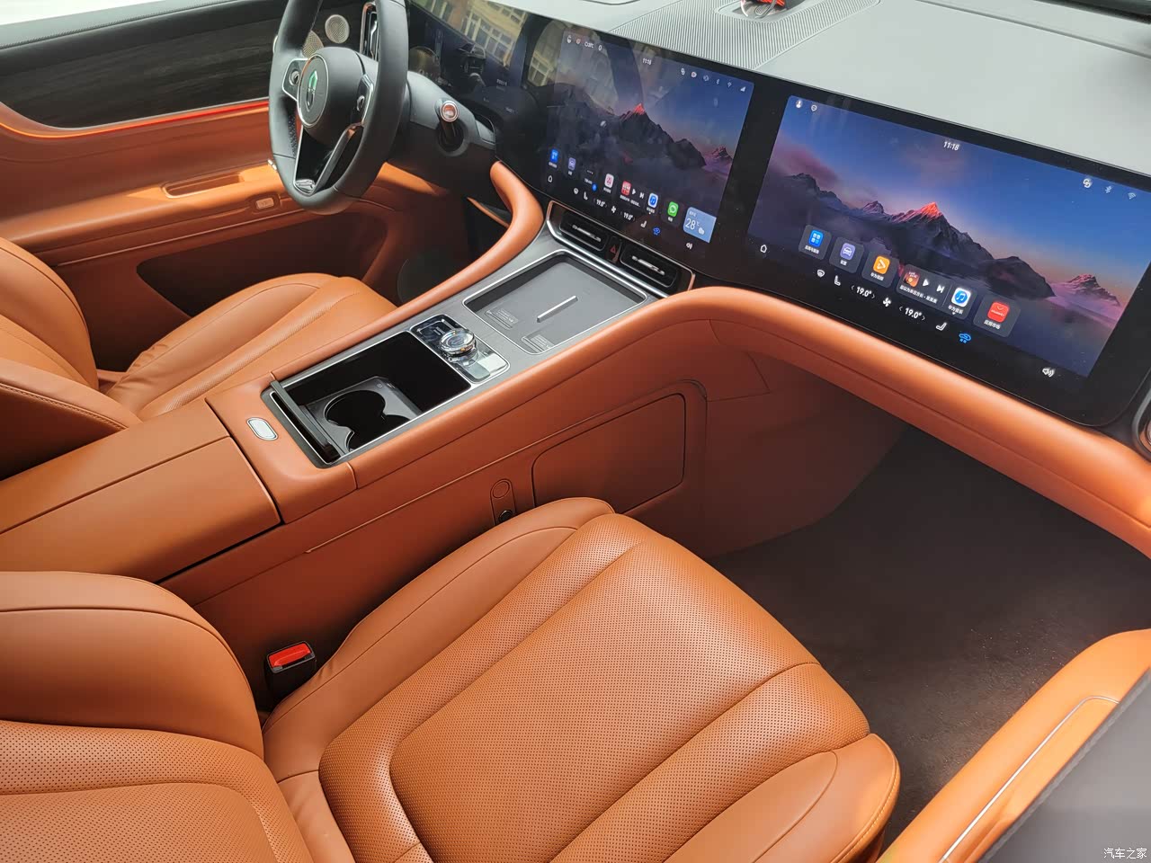 内饰很豪华,能够触及到的地方基本都是真皮的,非常有质感,也特别有档次,再有就是颜色上,同样很高级,同样有格调,整整齐齐的布置,合情合理的配置,独立的功能区,全液晶仪表盘,中控大屏,语音识别控制功能,这些都是科技的魅力。