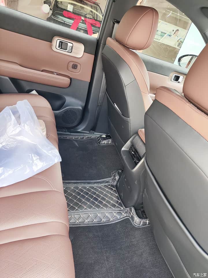 棕色内饰,好看,座椅做起来很舒服,通风有点感觉,但是不怎么明显,加热没试过!