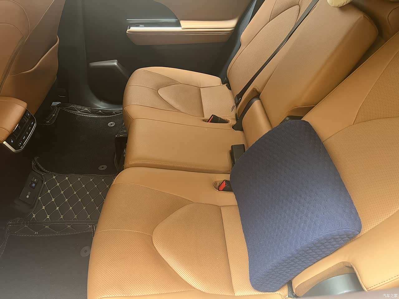 二排空间够大,相对于三代汉兰达来说还是小了一点,特别是二排空间,非常喜欢三代的设计,地台没有隆起来,纯平的,但是380T汉兰达的空间也很大了,中央扶手箱也够大,可以放得下一个女士大包包,或者好多瓶1.5L的大矿泉水。还有后备箱也挺大,我平常都是当5座车来开,后备箱空间真的好大,能装。