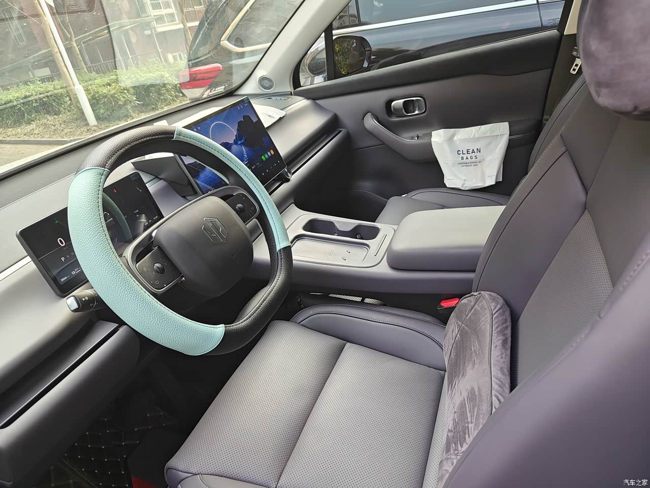 自己网上买的硅胶套,中控下面放手机,放茶杯,容易刮花,星源紫内饰非常耐看,不容易脏!