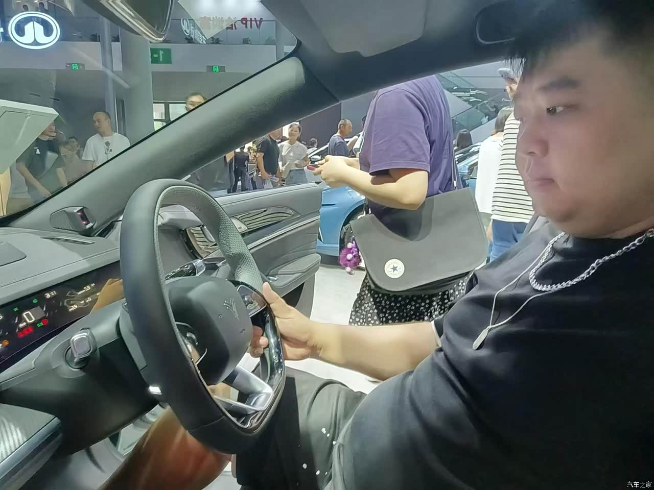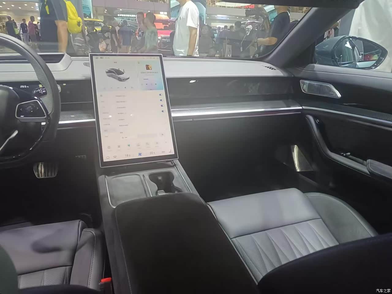 在现场看了展车以后不满意的地方主要是在内饰的做工还有用料细节方面,另外一个就是它的价格和上市优惠的政策。这台车的内饰风格我还是蛮喜欢的,科技大屏加上多种皮质材料包谷,但是它的材质摸上去有一股说不出来的廉价感,特别是这个方向盘上面是包皮材质下面用亮黑处理,在车展当天有很多人摸来摸去,方向盘已经有点油腻不堪了。还有前排车门的音响有点学奔驰的风格,但是它在细节处理上不太好看着有点山寨,外加下面有一个仿碳纤维的装饰板塑料感满满,不知道这些问题在实车交付的时候会不会得到解决?另外我的购车预算就是在18万左右,但是不代表我能够接受这台PRO版的定价在17.99万,我不知道其他城市的情况如何,在成都这边哪吒S三厢版其实有很多隐形的优惠,我感觉这车应该会再便宜1-2万元才比较合适。