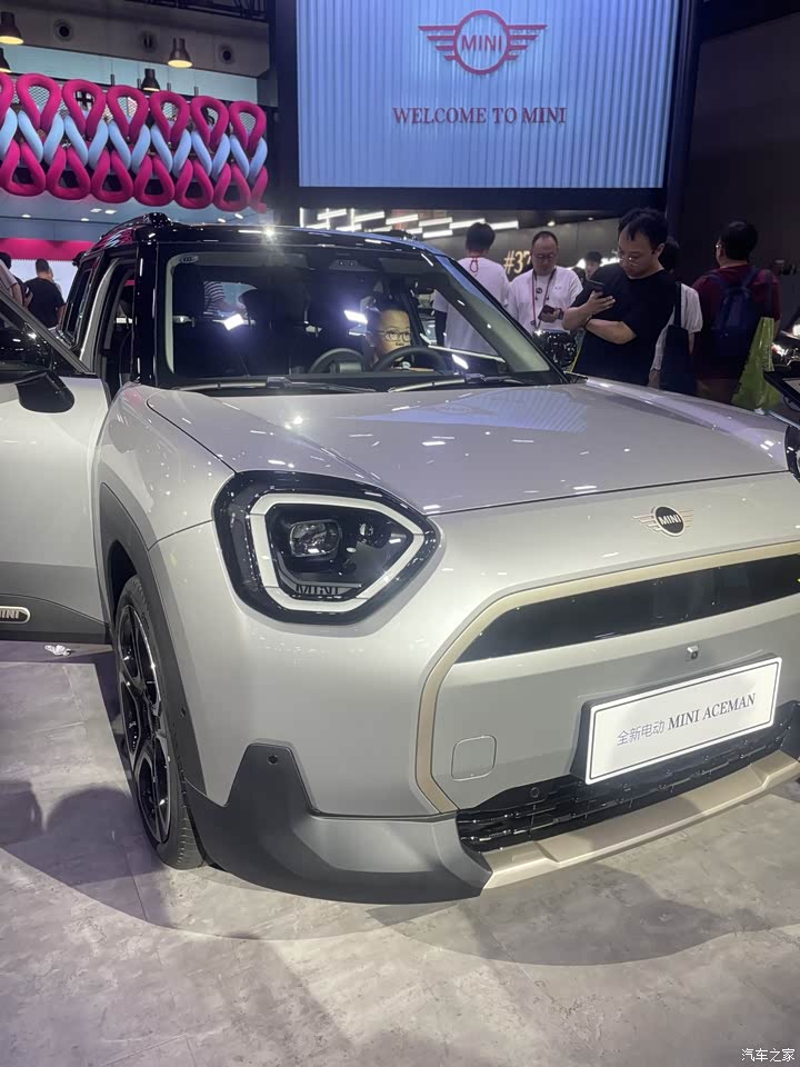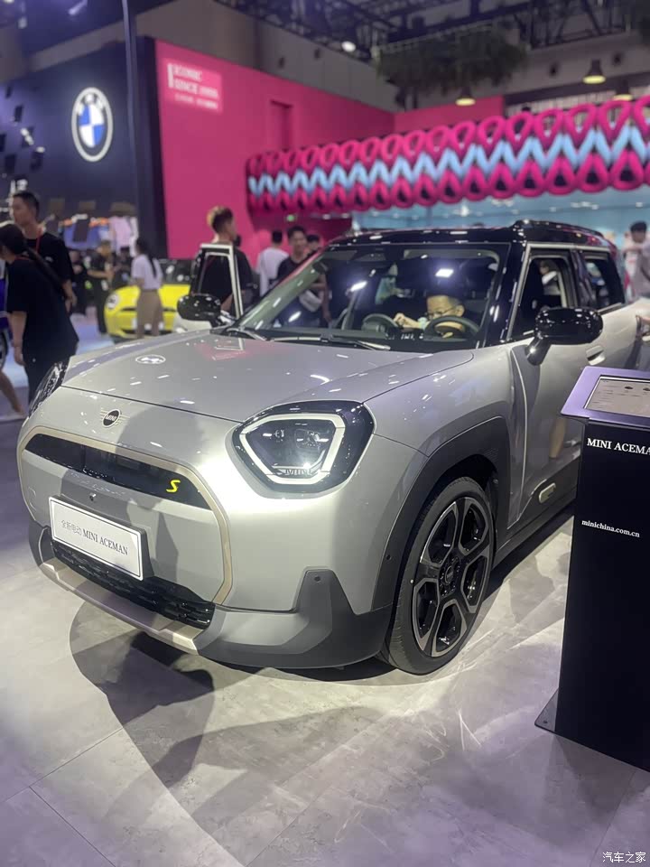 我相信MINI是每一个女生的梦想之车,2024年满大街都是电动新能源汽车的今天,我最喜欢的MIN品牌也推出了一款MINI小型跨界SUV车型MINI ACEMAN,这款小车在外观造型内饰设计风格上非常打动我,同时也是我对这款车比较满意的地方。 我现场看到的这款展车,它不仅是保留了经典的迷你元素,特别是这个大灯和前脸的造型,看起来更佳的呆萌可爱,而且在车身尺寸上还做出了一些改变,感觉空间更大一些了,实用性的加强了一些。 不过比起外观的变化,这台车内饰给我带来了很大的惊喜,准确的说是中间这块圆形的屏幕真的太可爱了,它不仅看起来精致可爱而且里面的动画效果也是做得十分的漂亮,毫不夸张的说如果这个屏幕有单独售卖的,我真想买一个回去拿回去,每天播放自己的照片当相册使用或者用它来追剧。