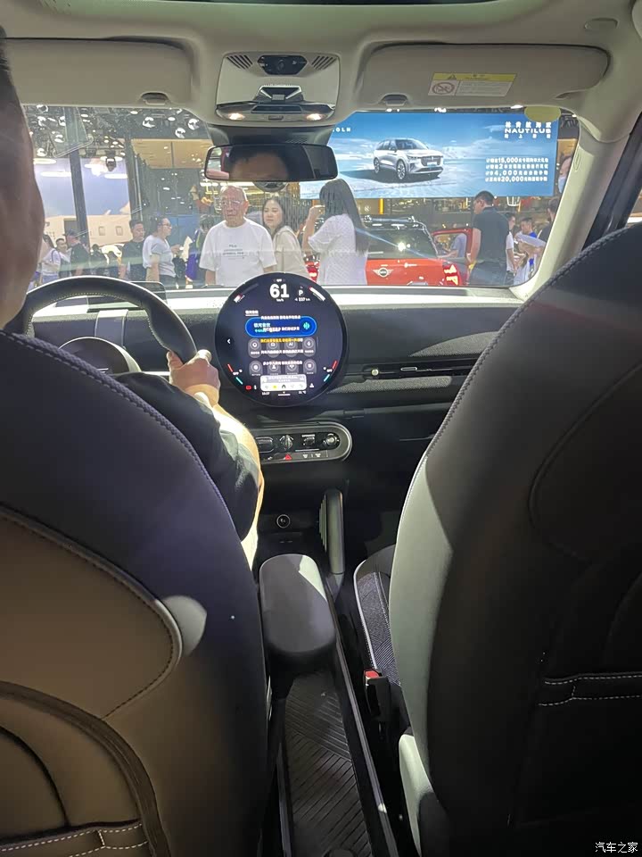 我个人觉得这款MINI ACEMAN的内饰对比以前的MIN老车型是退步的,没有了以前的那种英伦风和细腻的质感,除了这块圆形的大屏幕让我感受到了一定的精致感。 像是座椅的软硬度还有门把手和中控台的质感,我觉得退步了很多,但是它实际的销售价格其实都差不多,希望这台车后期可以改进一下内饰的用料。