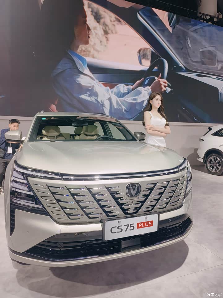 车展那天我还去逛了长安展台,因为我家亲戚有买过CS75plus这款车,他告诉我这款车现在要换代升级了无论是性价比还是外观都特别的好,所以我带着好奇还是去看了,看过之后这台车也给我留下了比较好的印象,我对这台车比较满意的点有以下几个方面。第一个方面是这台车的外观造型非常的大气饱满,站到正面欣赏这台车,它可以给我带来一个比较有冲击力的感觉,主要是它的车头设计得非常的饱满,然后以进气格栅中间的长安logo为中心往外扩散,类似v字型的波浪,看起来栩栩如生还挺有自己的特点。第二个方面就是它的内饰做工非常的精致,比我之前看的帕萨特Pro还要好许多,里面有一块超大的屏幕,而且类似四周的材质都是比较柔软亲肤的。第三个方面就是我亲戚告诉我这台车的定价可能会在12~14万左右,我现场看完车后觉得它的性价比非常的高,主要是空间大,内饰做的还比较精致,这很难不让人喜欢它