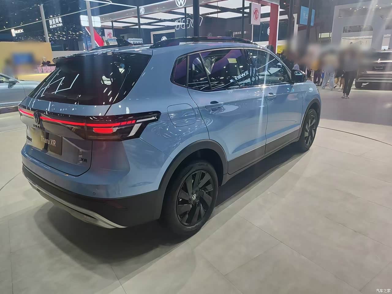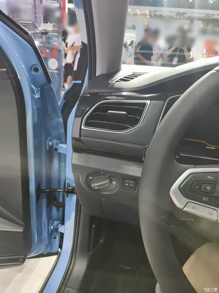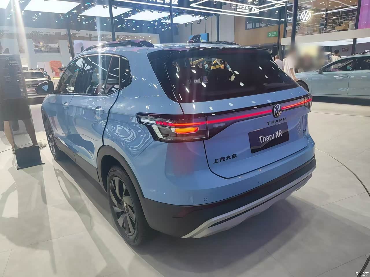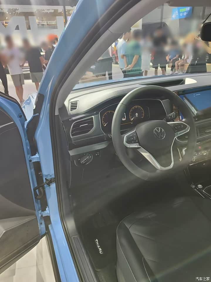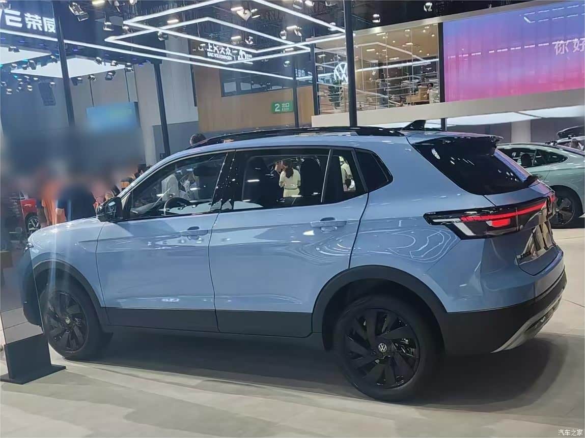 这台车的外观确实挺漂亮的,它的车身尺寸虽然不大,但是正面做出了比较大气的效果,引擎盖上没有过多的装饰线条,有一条贯穿式的led灯带把这台车的气场提升不少,左右两边的大灯看起来还是比较有精气神,幸好没做成那种分体式的设计。现场这台天蓝色的配色,然后进气格栅和耳朵和门框都用了黑色烤漆材质,两个颜色相互碰撞后看起来还是挺年轻有活力的,我觉得年轻人都会喜欢这种设计。这台车的侧面还是熟悉的大众味道,我感觉就像是标准版的途锐把比例给缩小了一些,整体看上去还是非常的经典耐看。个人觉得最好看的就是它的车尾造型,车尾敦实饱满有力量感,尾灯也做了熏黑处理,看起来挺漂亮的,另外还有一条贯穿式的车尾灯座尾点缀。实话实讲如果不是现场公布价格,我绝对想不到这台车的起售价只要7.99万,现场这台如果是1.5T高配车型,那也只要10万出头即可拿下。