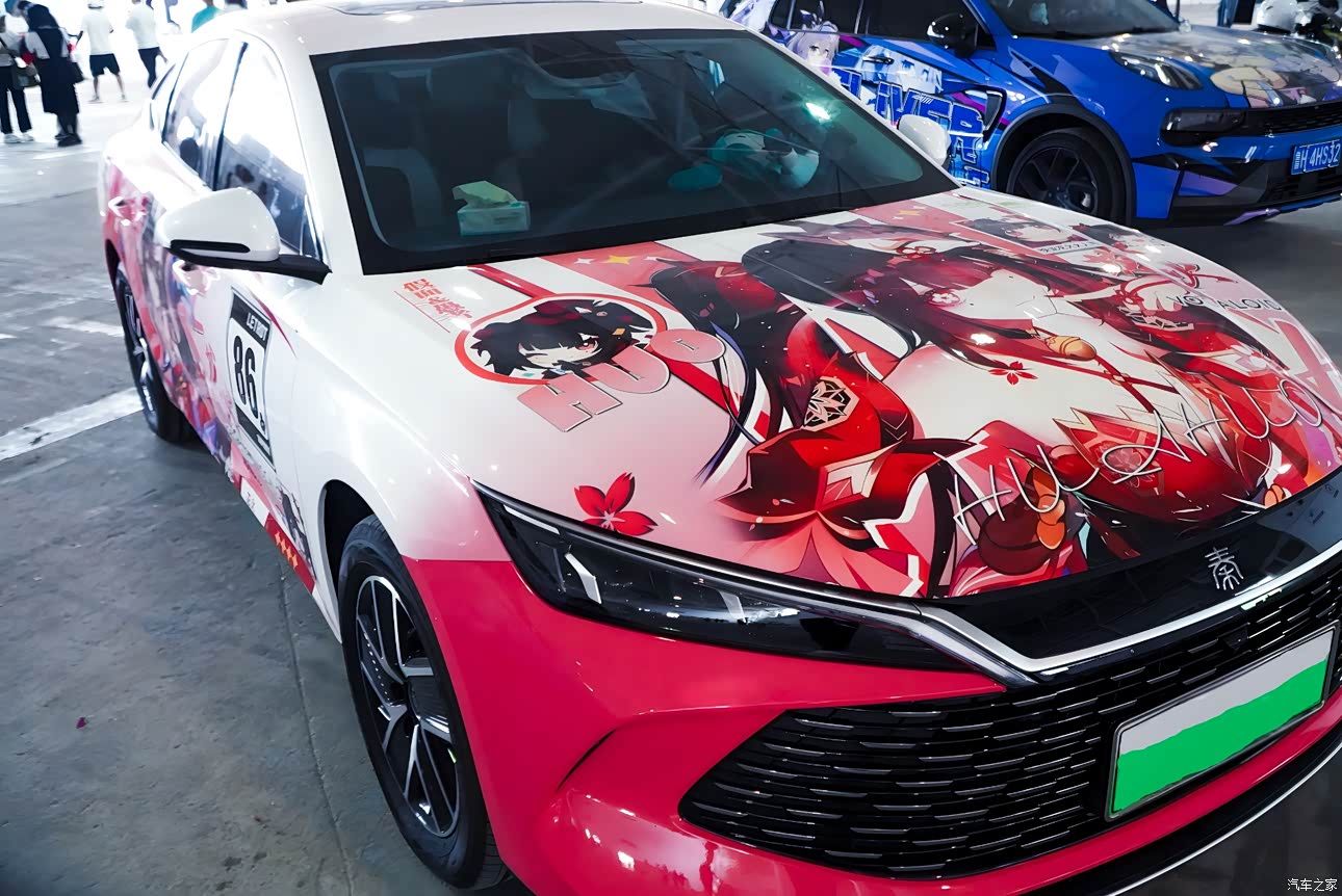 这车外观设计的比较霸气,前边的这个日行灯很长一条,有种龙须的感觉,后边有点像那种中国结,都是中国文化。因为我自己比较喜欢玩游戏,所以自己设计然后贴了个车衣特别喜欢,花了4000多。
