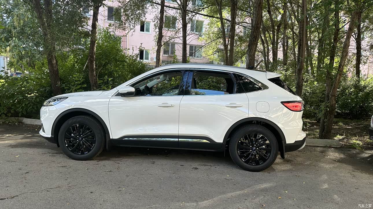 整车线条流线,侧面底部凹进和全熏黑轮毂以及车顶行李架框彰显运动属性,整体运动感十足。普通白漆面喷涂均匀、油亮,质感好,