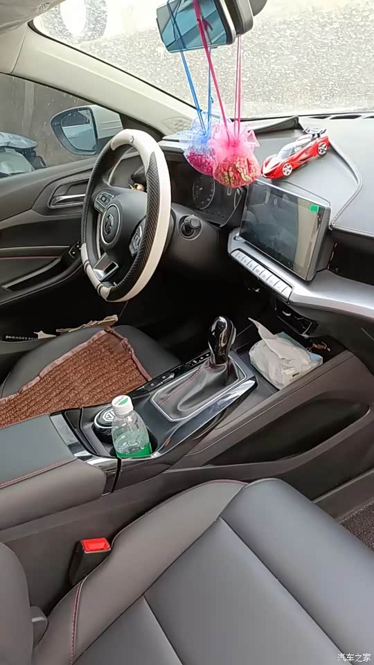 那是这个的话,挺简单的,就是我倒是也挺喜欢简约一点的风格,后视镜上面挂的我女朋友给我买的挂件,哎呀,感觉挂上以后车都温馨起来了
