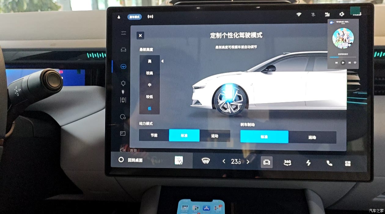 智能化方面我是最有发言权的,Z10车机界面布局几乎和08一模一样,操作和功能上也大差不差。举几个简单的例子,比如语音打开车灯,语音打开后备箱,语音打开各种应用软件等。那么和08不同的有哪些,首先车机上选择的驾驶模式更多了,个性化模式中还能调节空悬的高度,主页面还能主动控制电动尾翼。然后仪表,虽然Z10的只有一窄条,但是驾驶信息显示的还是挺全的。车机芯片AMD V2000A,毋庸置疑目前市面性能第一,可以完美运行悟空等3A大作,发布会还提到后期会有电竞版选装,这个就有点鸡肋了,有那几万块钱不如换一套电脑显卡了。后排copad的话看个人所需,能娱乐能控制空调等。对了,有两点没有08好,一个是hud尺寸不够大,另一个是全系不支持手机绑定UWB钥匙。
