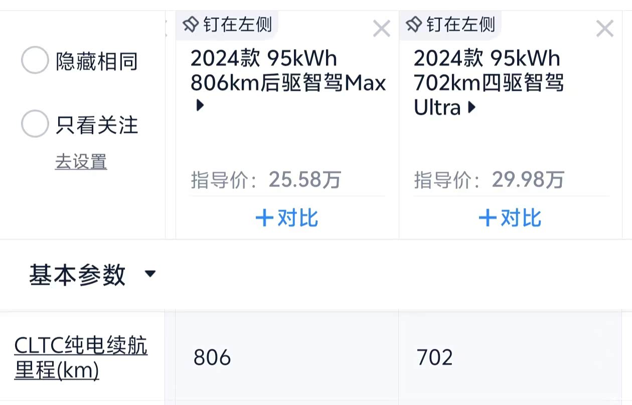续航里程可以看到之家的数据,四驱版702km,官方的数据都是在CLTC理想工况下,实际据我一年的用车体验,按WLTC计算更准确,满电续航比官方数据少几十公里。我试驾是用的是舒适模式,如果按WLTC算的话,用节能和舒适模式续航能达到1:1,甚至有时能高于这个比例,运动模式提升动力的同时也会有额外一部分电耗。另外,在东北地区,冬天温度低,不管啥电池基本都是折半的续航,相差的也就是有没有地库,每天启动后行驶多远的差别。