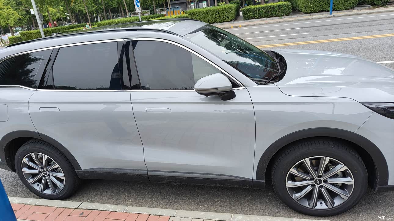 风云 T9 外观很耐看,而且车宽真的挺大的,比旁边普通车宽了一大截,外观说不上惊艳但很耐看。论坛里很多人都喜欢豪华版轮毂,但是我个人是真的喜欢舒适版的轮毂,那种细条条多辐的欣赏不来,还是喜欢偏运动的。灰色外观很大气,特别像奥迪性能车才能选装的水泥灰,奇瑞直接白给了,哈哈。