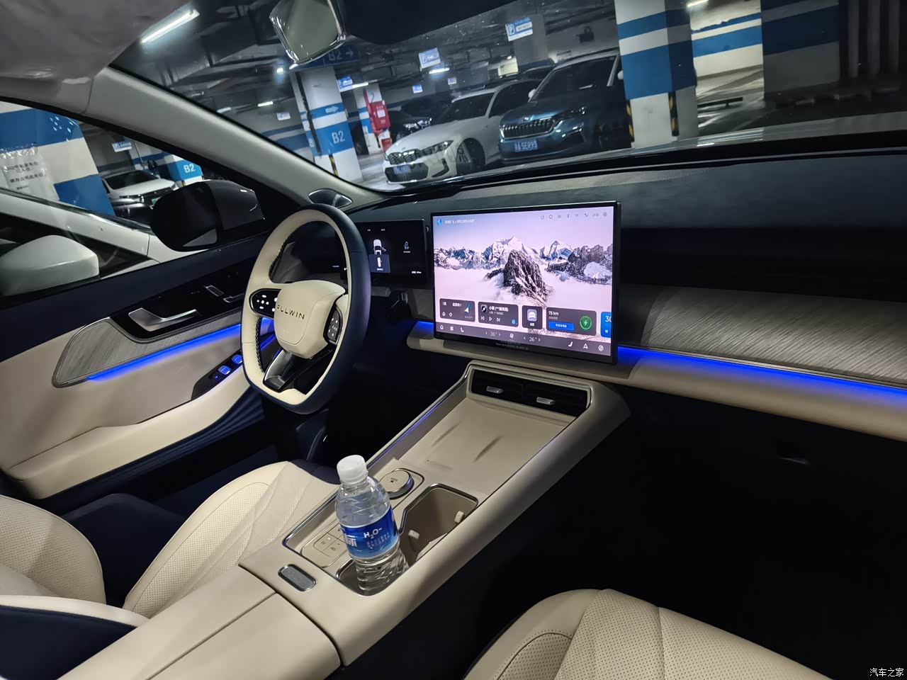 内饰也是我最满意的地方。蓝白内饰颜值极高,之前老婆装修房子一直想选地中海风格,可惜家里人觉得预算高、太跳脱最后给否了,结果现在在风云T9上实现了,而且只花了2000块钱,想想也算是低成本圆梦了。