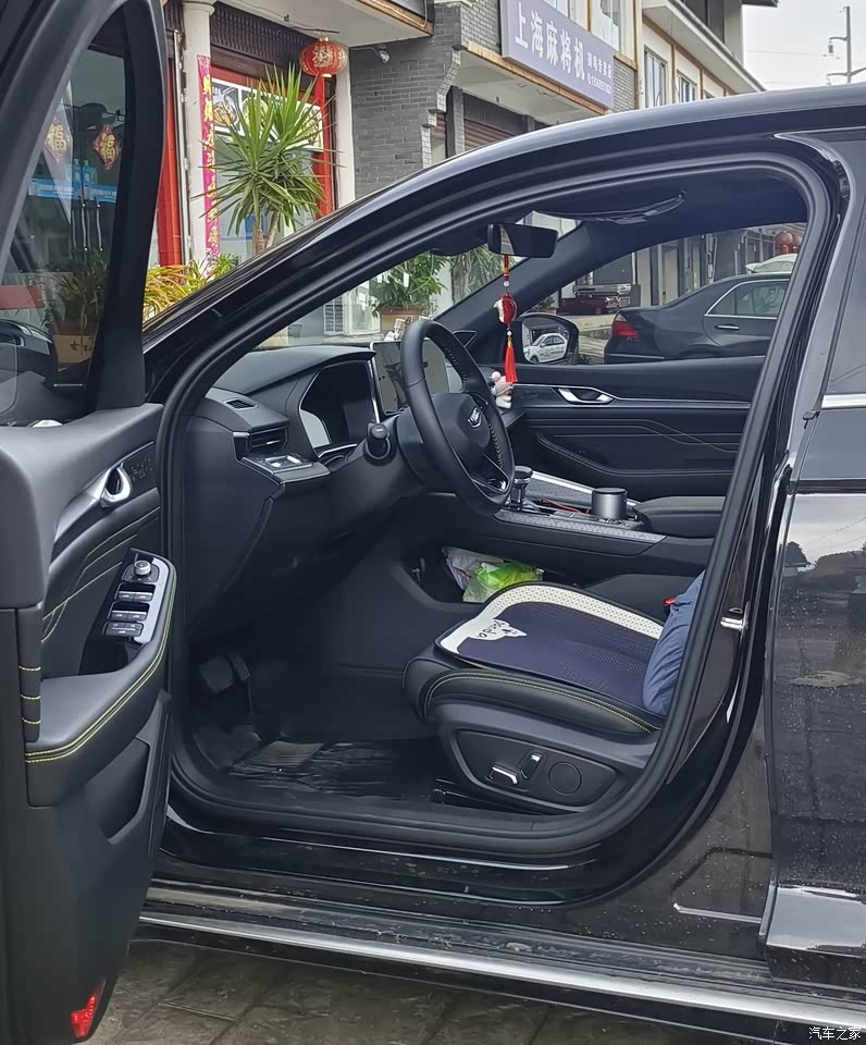 这个车内饰以纯黑为主,座椅缝线用绿色线点缀,运动座椅,舒适性十足,黑色的内饰耐脏也耐看,我反正是非常喜欢,主副驾都支持电动调节位置,中控有两个水杯架,可以拉板盖住,中控储物箱空间非常大,足够使用!