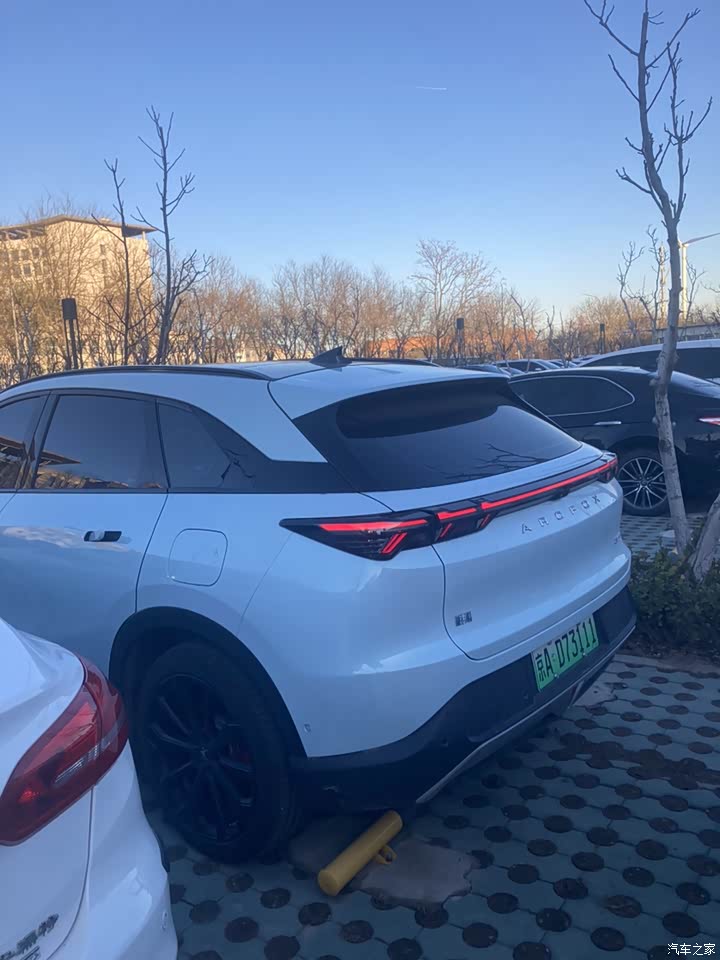 我当时订车的时候是在网上订的车,车的颜色也没有实地的去观看,等到提车的时候我发现这车的颜色好漂亮。\n单单从它的外观设计就很是用心,虽然是一款新能源SUV但是你还是可以在这车上看到流线型的设计。\n极狐的车标特别的美观。\n车子的20寸大轮毂再加上我选配的红色卡钳,颜值爆表。
