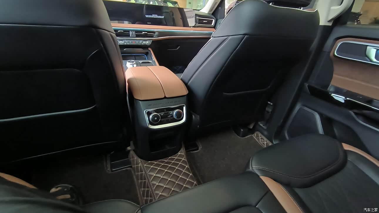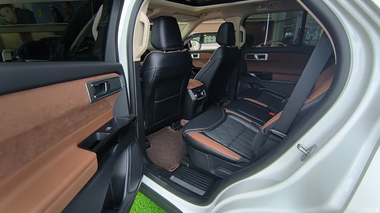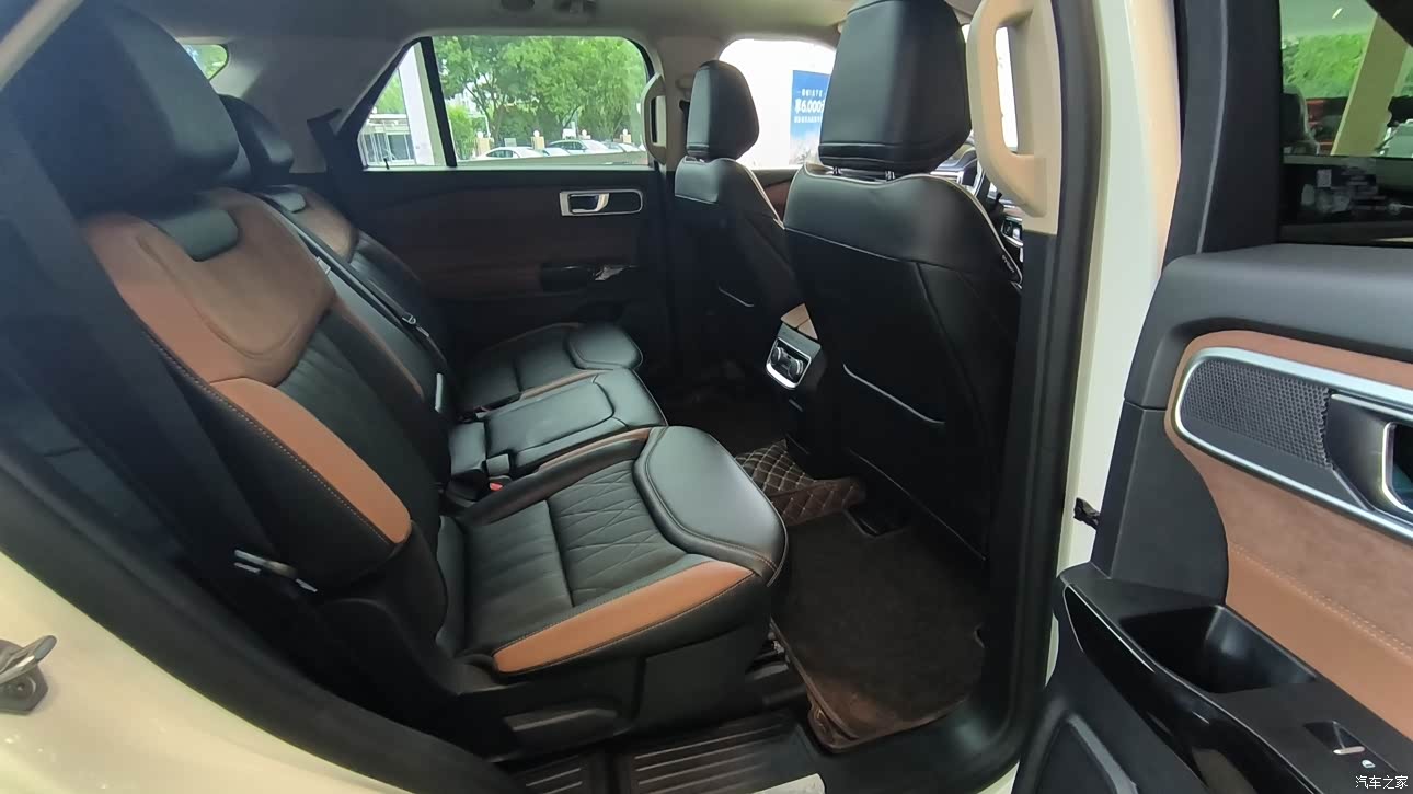 车身大轴距长的优势就是在空间中能体现出来,这个车前两排的空间表现是非常优秀的,都拥有充裕的腿部和头部空间,我身高1米80,前排调整好以后,在第二排头部和膝部都能获得非常宽裕的空间,即便是长途旅行,也能确保每位乘客都能享受到舒适的乘坐体验,但唯一美中不足的是第三排,这也是几乎所有重大型SUV难以克服的硬伤,坐姿较低,且膝部空间有限,短途短时间应急可以用长期旅行的话做起来会非常不舒服。 最后车内储物空间也比较丰富,后备箱容积也相当可观,就算是带大量户外装备出游,也能轻松应对。这种对空间的极致利用,无疑让探险者成为了家庭出游的理想选择。