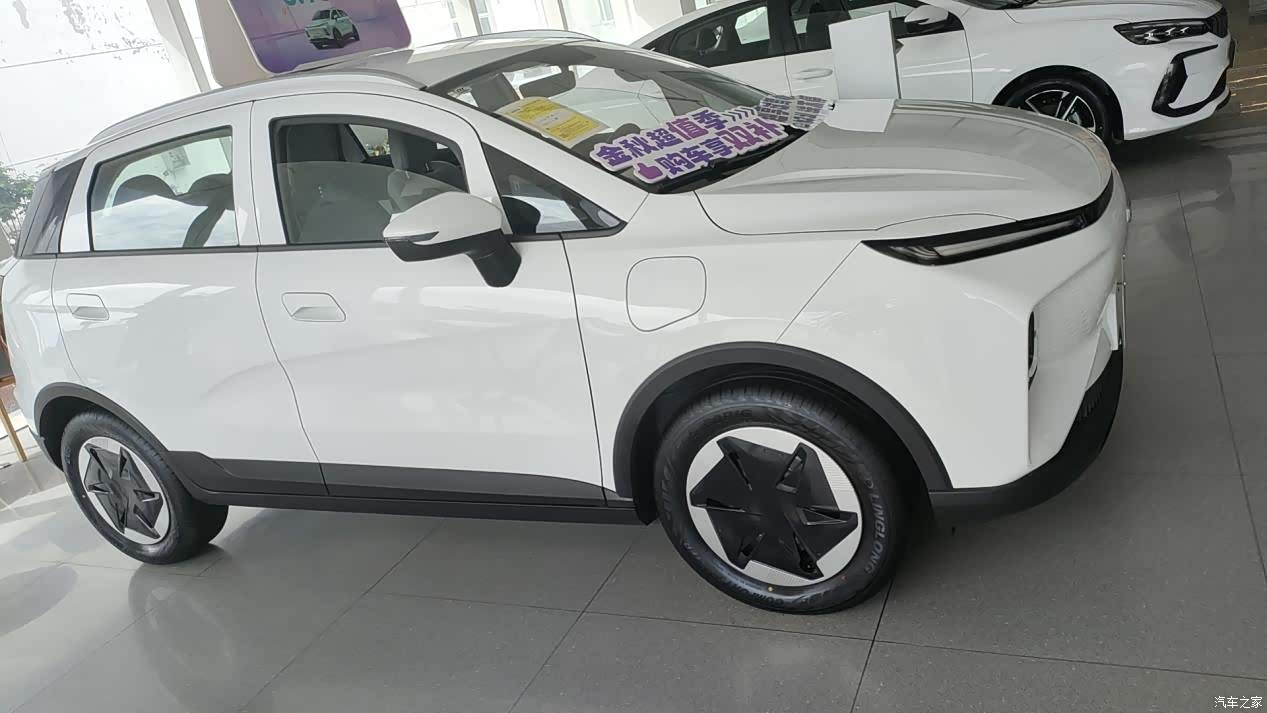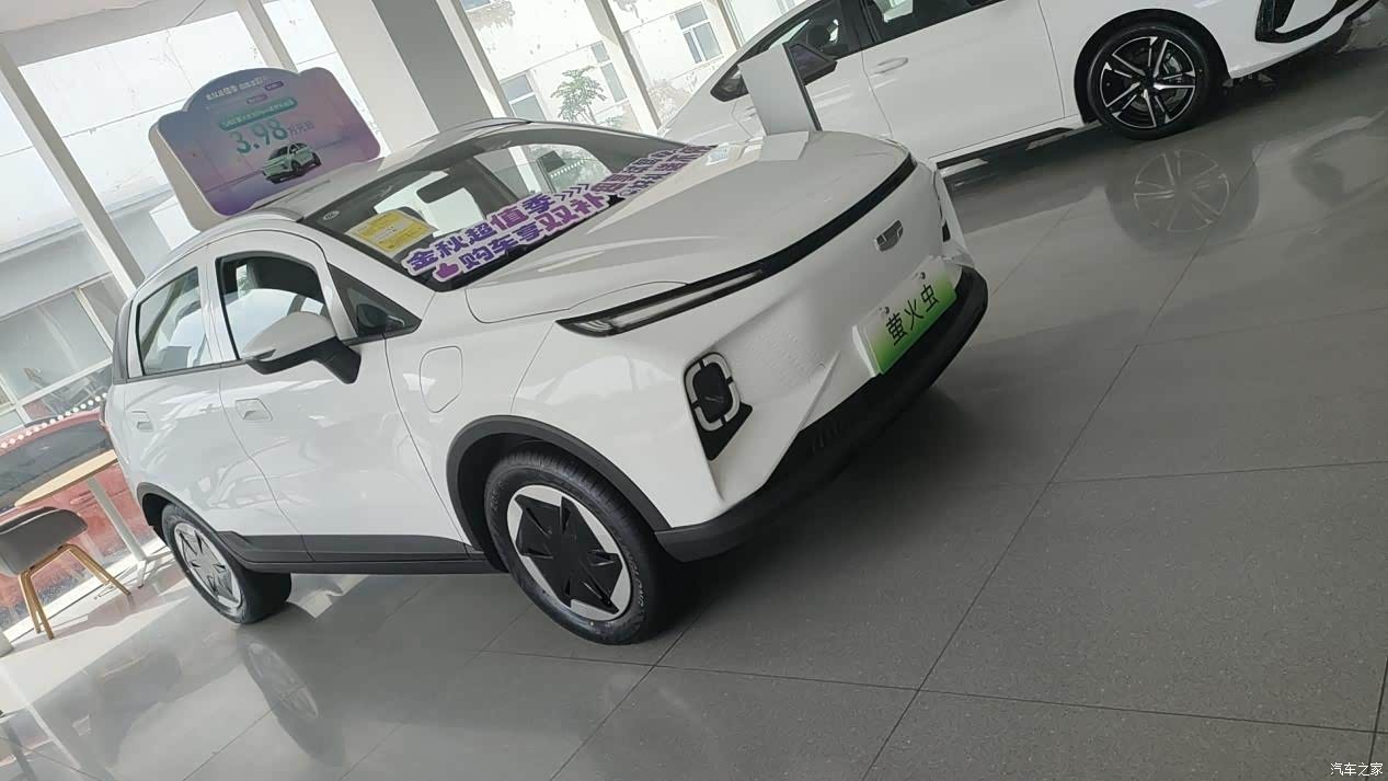 外观颜色我是真喜欢,淡淡的薄荷绿看起来就很清爽,。前脸的造型设计得挺好看的,尤其是大灯组的设计看上去炯炯有神的样子很拉风!几何E萤火虫的外观设计相当时尚,线条流畅且动感十足。前脸采用了封闭式设计和犀利的车灯组的组合元素使得整个车辆看起来非常有辨识度!车身侧面则采用简洁大方的设计语言来凸显出这款车的运动气息与力量感并存