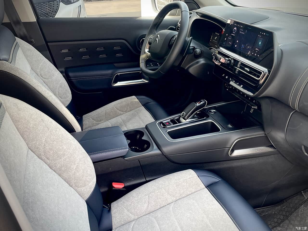 进入车内,宽敞的空间让人感到十分舒适。座椅的包裹性和支撑性都很不错,长时间乘坐也不会感到疲惫。内饰的材质和做工也很精细,营造出了一种高品质的氛围。内饰采用了雪铁龙家族式的设计语言,整体风格时尚、精致。中控台的布局合理,功能区域划分清晰,操作方便。车内使用了大量的软性材质和皮革包裹,触感舒适,提升了整车的质感和豪华感。配备了大尺寸的中控显示屏和全液晶仪表盘,显示效果清晰,信息丰富。同时,还搭载了雪铁龙最新的车机系统,支持导航、蓝牙连接、手机互联等功能。在细节方面,也做得比较到位,例如车内的缝线、镀铬装饰等,都体现了较高的工艺水平。总体而言,内饰设计时尚、质感出色,科技配置丰富,能够为驾乘者提供舒适的驾乘环境。