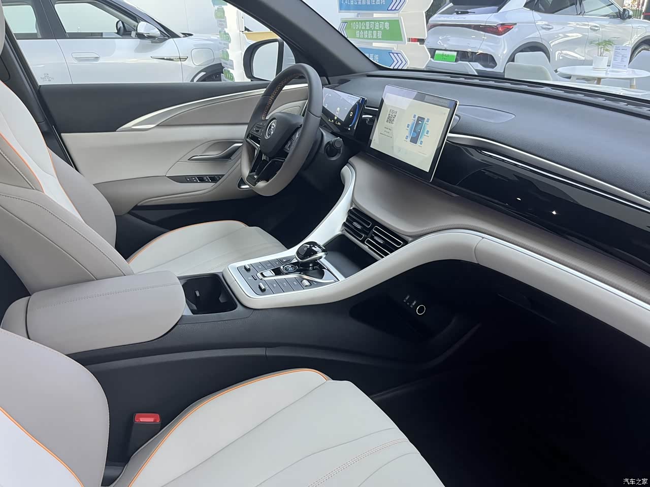 内饰设计上中控台上配备了大尺寸悬浮式液晶屏,支持旋转设计,方便在不同使用场景下调整屏幕角度。嵌入式液晶仪表盘提升了车内的科技 氛围。同时,内饰采用了仿皮材质很有豪华质感。