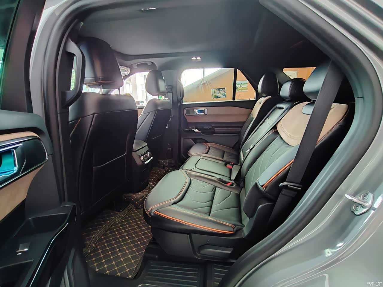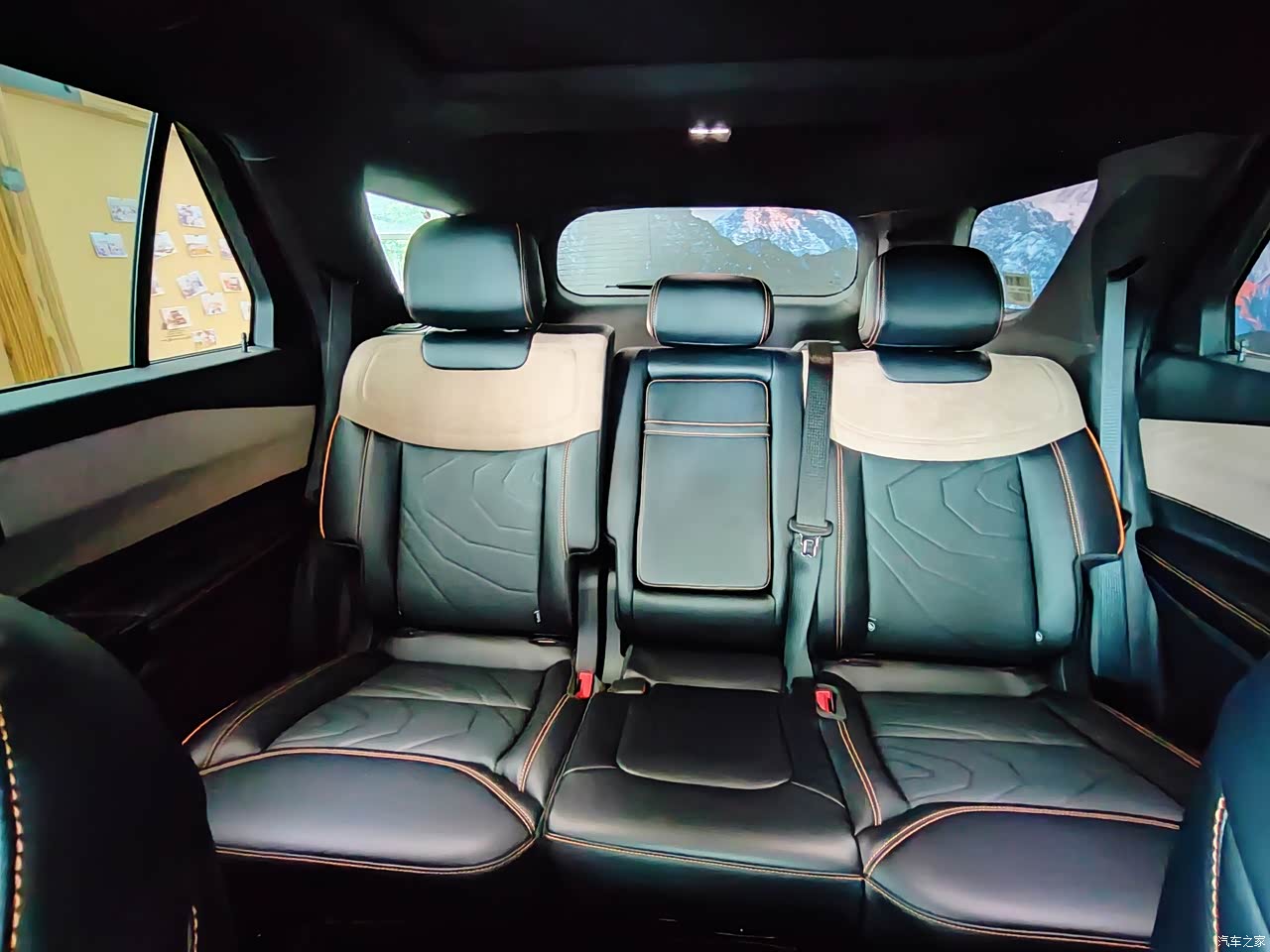进入车内主驾与副驾的乘坐空间首先映入眼帘。得益于其超过3米的长轴距和近6平米的乘坐空间,主驾与副驾的乘客都能享受到充足的头部和腿部空间。对于我来说完全有足够的空间,而且对于身高较高的驾驶者来说,即便是调节到合适的驾驶姿势,头顶与车顶之间仍有充裕的距离,避免了压抑感。同时,腿部空间同样宽裕,无论是长途驾驶还是短途通勤,都能保持舒适的乘坐体验。 我试驾的是探险者昆仑巅峰7座,第二排座椅不仅宽大且柔软,支持多向电动调节,可以根据自身需求轻松调整至最舒适的坐姿。在腿部空间方面,即便是第三排座椅,对于一般身高的乘客来说也完全足够,不会感到局促。同时,头部空间同样宽裕,即便是佩戴帽子也不会感到压迫。 探险者昆仑巅峰版的后备箱空间表现同样出色。标准后备箱容积达到了515L,无论是放置行李、帐篷、天幕还是防潮垫等工具都能轻松装下。当需要更多储物空间时,通过放倒第二、三排座椅,后备箱的最大拓展容积可以达到惊人的2487L,几乎可以媲美一辆小型货车的装载能力。后备箱的深度和高度都设计得恰到好处,即便是放置大件物品也能轻松完成,取放物品时无需费力弯腰或攀爬。 在储物空间的便利性上也下足了功夫。车内遍布着各种实用的储物格和杯架,方便乘客随手放置手机、钱包、水杯等小物件。同时,中控台下方还设有大容量的储物箱,可以容纳更多随身物品。此外,车辆还配备了智能感应尾门功能,只需携带钥匙靠近车辆后部并轻轻踢动即可开启尾门,进一步提升了使用的便捷性