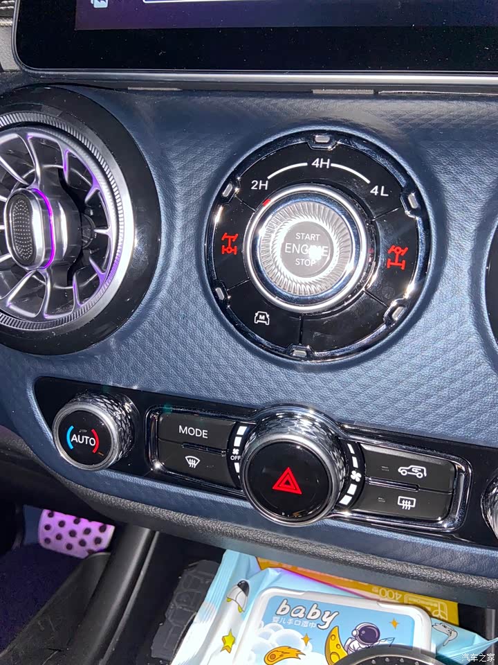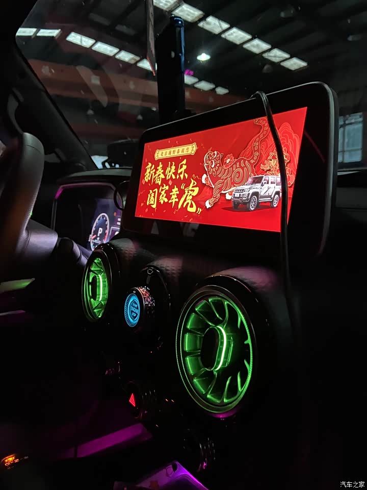 内饰方面现在也增了很多软包设计,座椅的皮质感觉还不错,如果你细心会发现你身边开BJ40四五年朋友的车座椅磨损痕迹小,座椅也没有被压塌依然是很饱满。而且座椅中间靠背都进行打孔处理透气性要更好一些,座椅的舒适性也主要集中在前排,我买的是环塔冠军版算是高配了有64色氛围灯,带主副驾座椅加热和方向盘加热