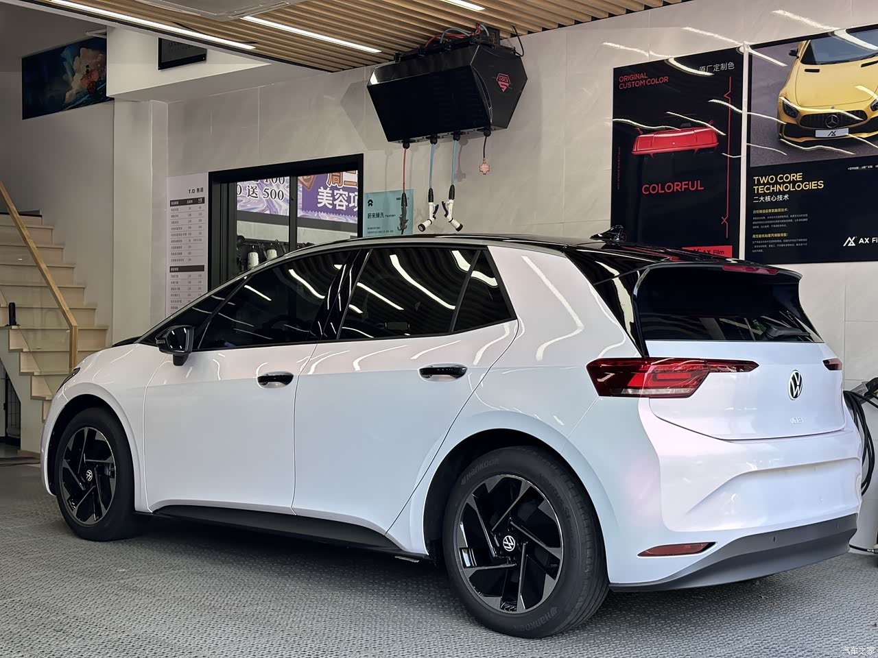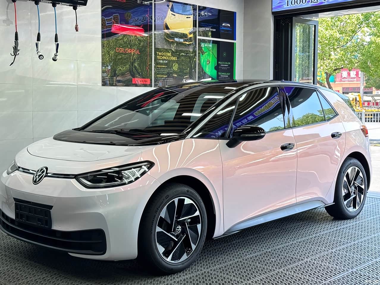 原车外观是星耀白,提车第一天我就给ID3定了AX的花悦粉改色膜,贴完之后感觉气质满满好看极了