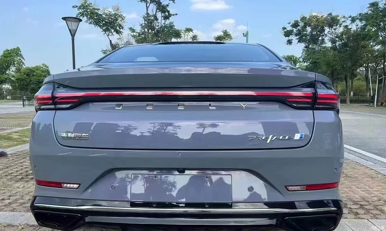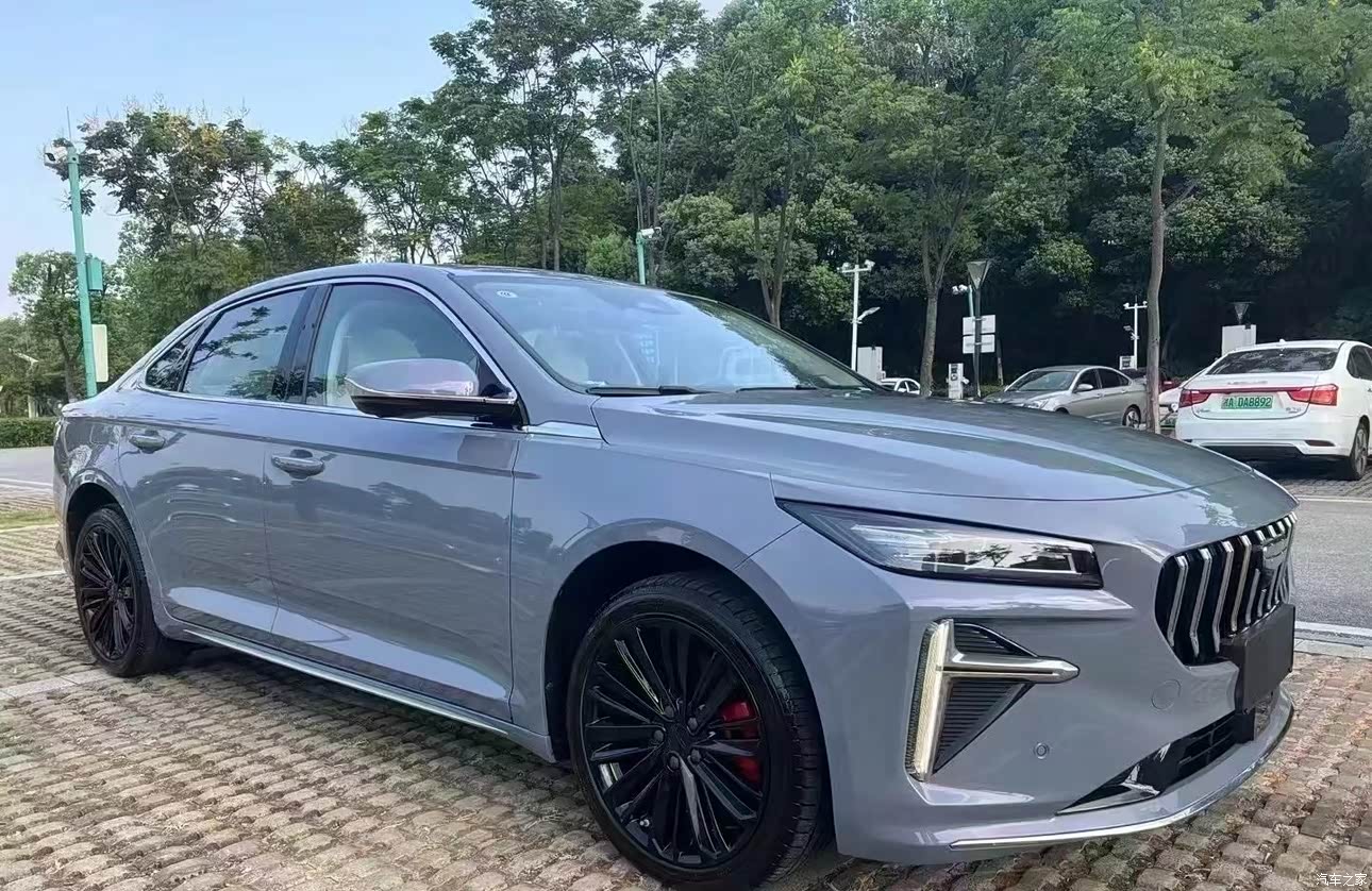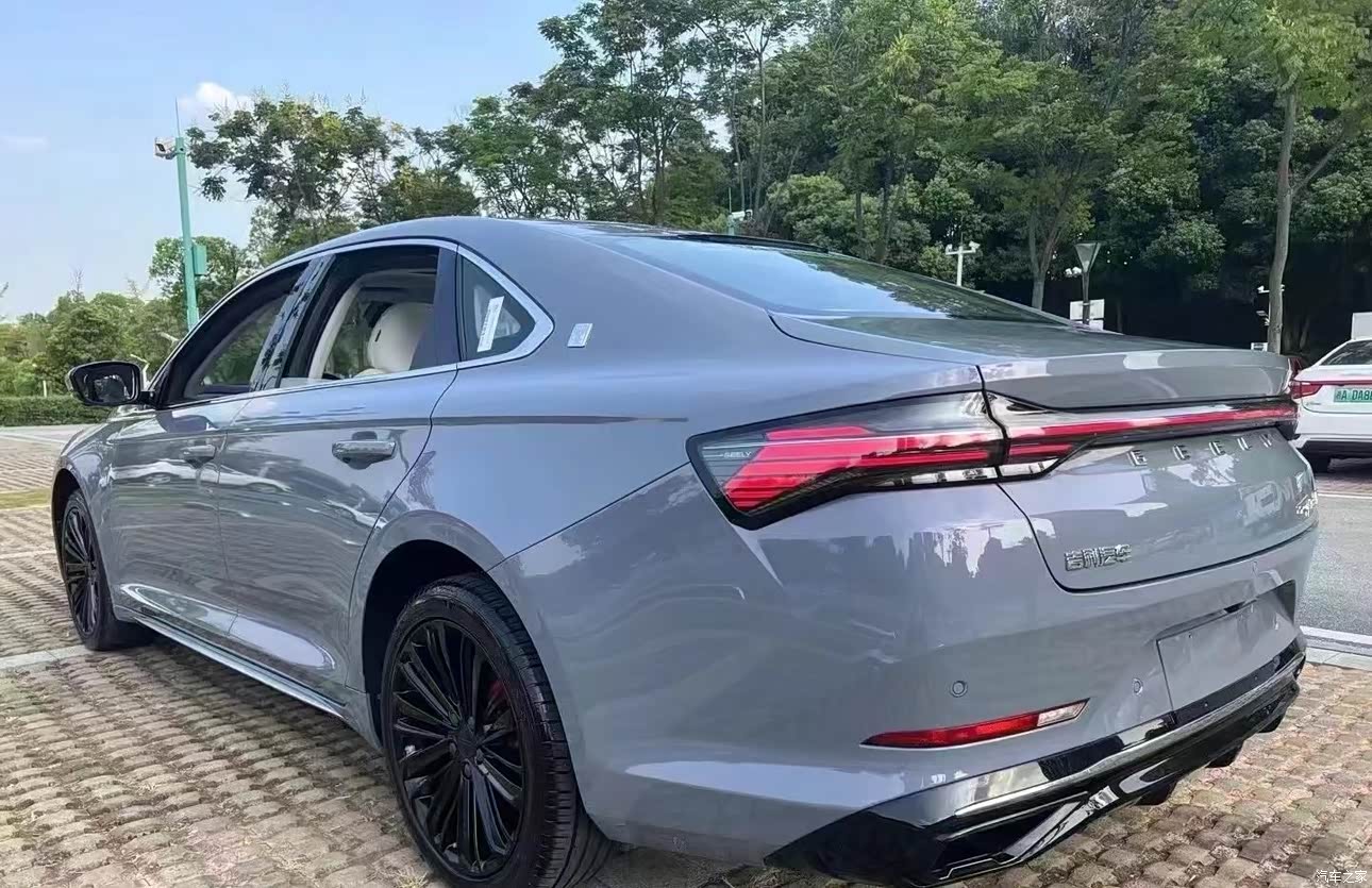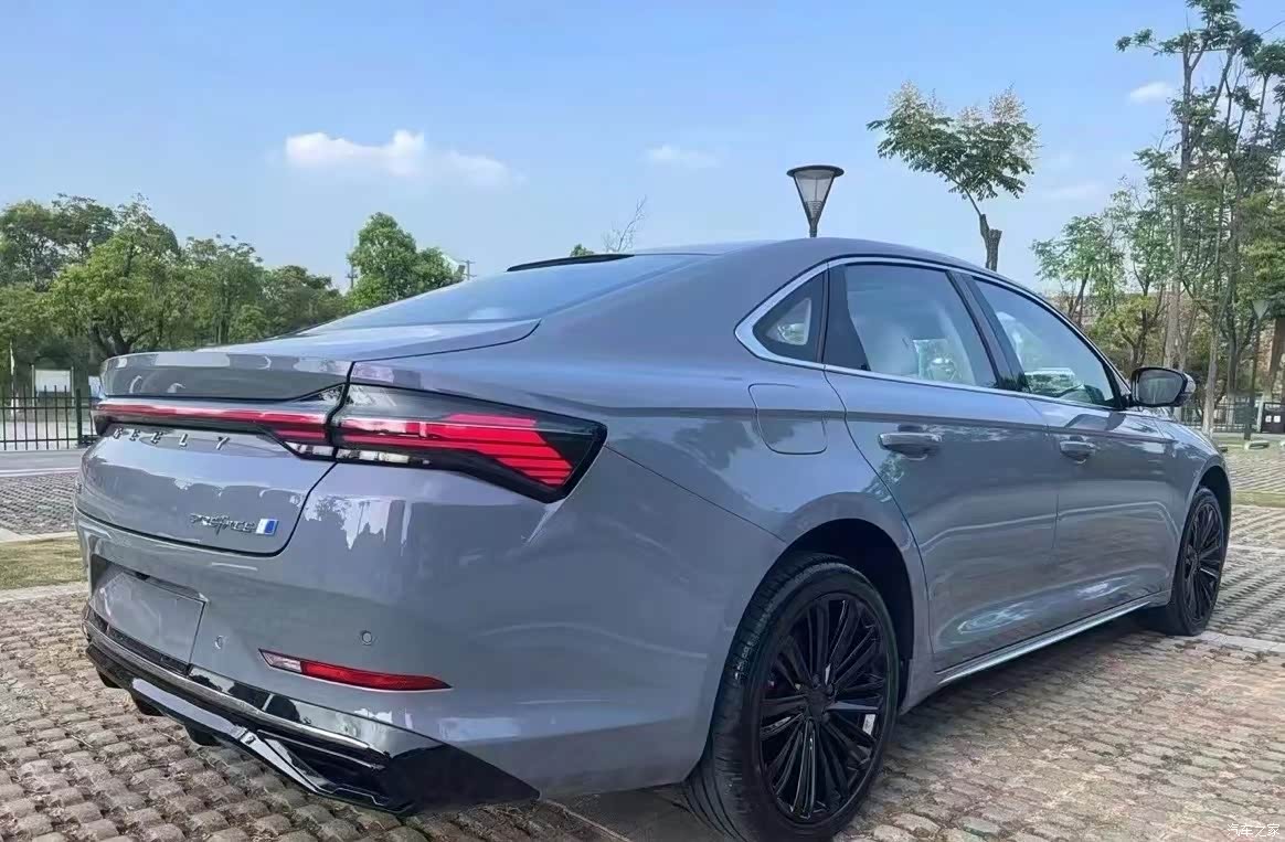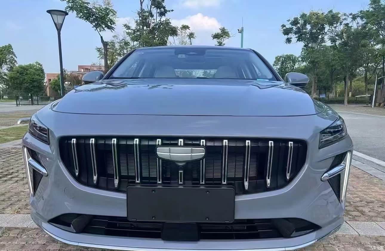 从外观设计上来讲,这台车子确实有着非常多的亮点,首先这个前脸的设计就很有视觉冲击力,整体看上去的辨识度也非常高,包括吉利的这个银色logo看起来也确实很有档次,不过我觉得要是这个门把手做成隐藏式的设计的话那效果肯定会更好一些。