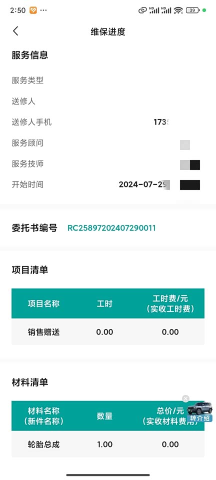 2700多公里去售后两趟吧,第一次是刚提车开回家10公里邻居看车发现左前车轮扎了一个大钉子,然后又开回4S店销售找老板换个一个轮胎直接给更换了,第二次是和朋友跑出去玩走烂路的时候座椅锁钩有点响就跑到售后去调节一下