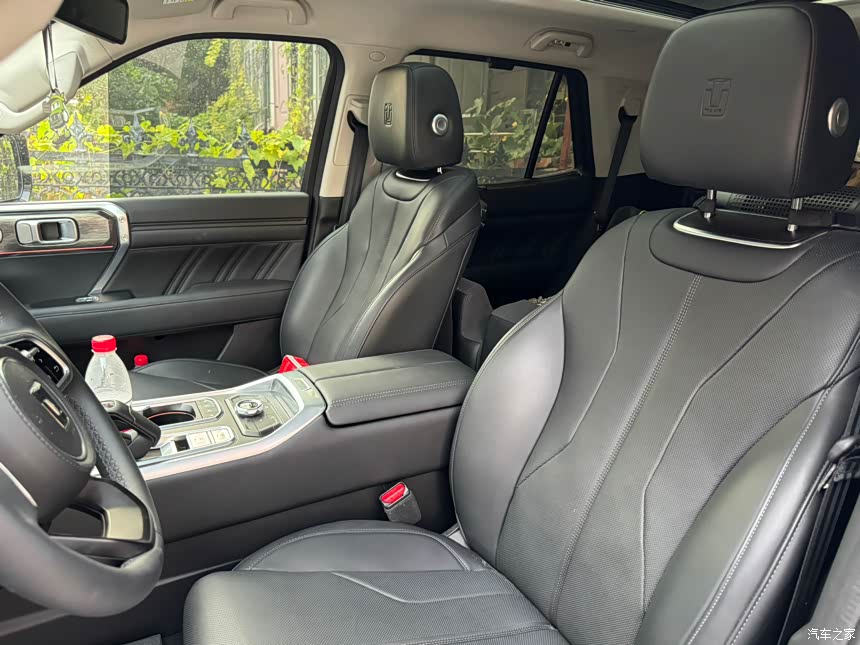 内饰整个看起来豪华感很强,座椅的这些皮质包括中控面板的这些拉花的设计很漂亮,包括这个出风口的造型很时尚,中控屏幕是一大块触摸屏,平时用起来很方便。 平时基本上是会用这个语音唤醒的功能去操作空调啊,等等,然后也有实体的摁键,包括这个四驱模式的选择,座椅通风座椅加热,都可以实体按键操控,也很好