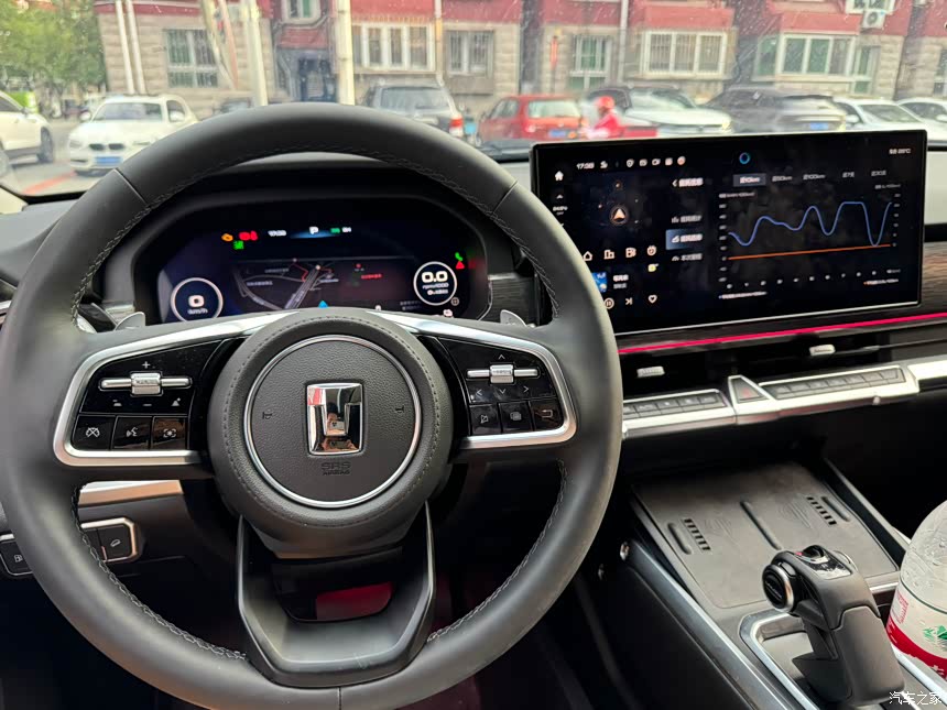 纯电模式和那个智能模式下油门的响应,包括刹车都非常的舒服,开起来没有什么疲劳的感觉,然后在高速上的话。 一般就是开那个智慧巡航智慧巡航的话非常好用,可以在远途出行的时候跑高速都不会觉得累,方向盘操控的话比较轻,然后也可以在设置里调成运动模式,跑高速的时候在方向盘给人的感觉很扎实。 车的这个外表看起来非常的大,他的轴距也很长,但是这个实际上开起来并没有感觉开一辆很大的车,他的方向打打的去哪很准,然后包括停车起来的话操纵起来也是比较流畅的,没有那么难,他的360的环绕可以帮助你去看这些盲区。 出去越野的时候包括涉水啊,一些泥泞的路段,一些沙漠这个车开起来感受是非常有信心的,整个车操控起来非常的棒,底盘调小得很合适