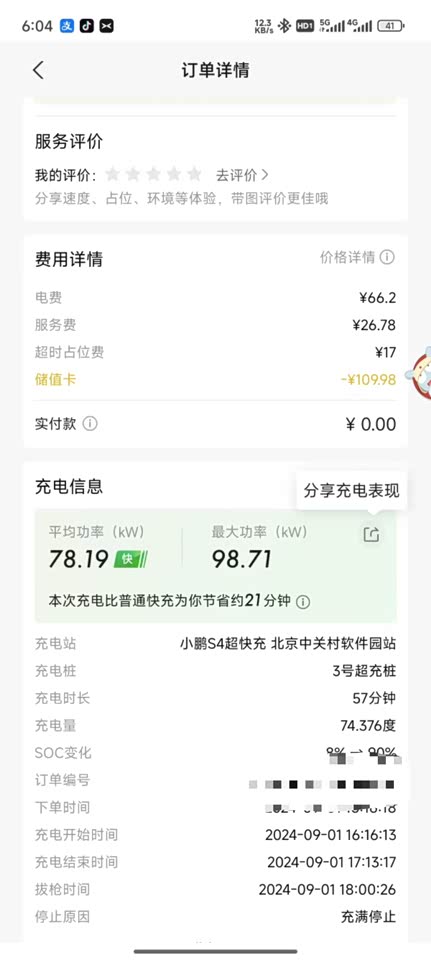 在电耗方面,小鹏 P7i 的表现较为出色。根据实际使用情况,车辆在城市道路上的电耗相对较低,能够满足日常通勤的需求。在高速公路上,电耗会有所增加,但总体来说仍在可接受范围内。车辆的能量回收系统也起到了一定的节能作用,可以在减速和刹车时将部分能量回收,增加续航里程。此外,小鹏 P7i 还支持快充功能,能够在较短的时间内为车辆补充电量,方便用户的出行,自营的S4桩从10%到90%大概只需要40分钟,在车里小睡一会儿就好了,有一次还因为睡过了多花了十几块钱。