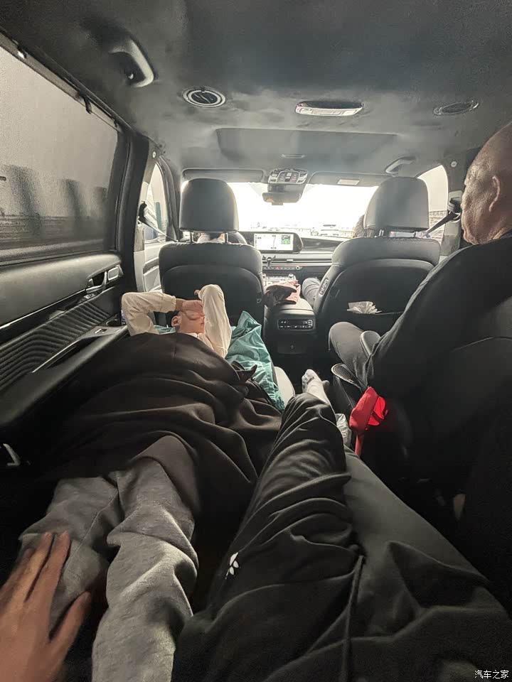 Suv里面,这个第三排勉强可以接受,地台有点高,腿太长坐久了没那么舒服,短途坐人还可以,空间整体满意,充电口够多,充电方便。杯架也多,可以放好多瓶水。还是一个字,大!