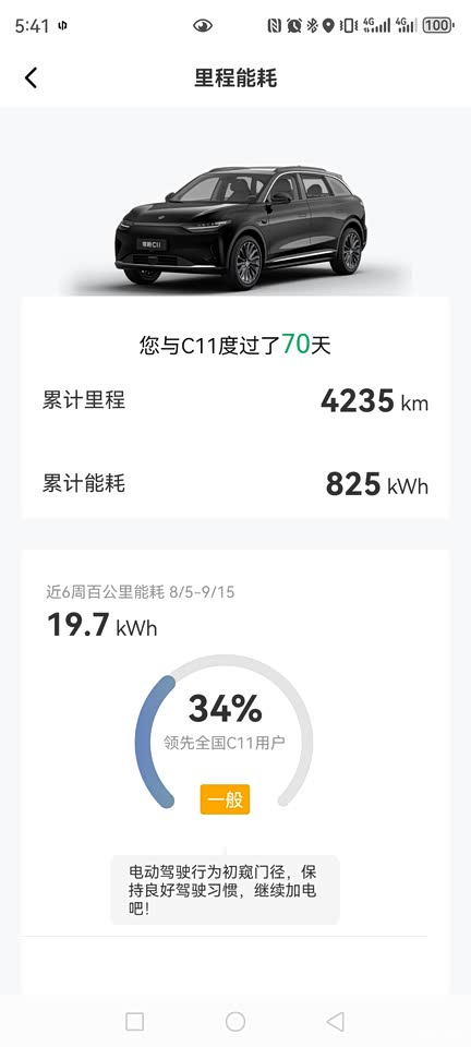 续航标注是580,目前使用下来在400多点。动力方面,C11 580尊享版搭载的高效电机,不仅加速平顺,更在续航上给了我十足的信心。城市通勤游刃有余,即便是长途旅行,也能轻松应对,让我不再为电量焦虑。智能驾驶辅助系统的加入,更是让驾驶变得轻松又安全,车道保持、自动泊车等功能,让驾驶成为了一种享受。分享一下我关于电耗的行驶经验吧,首先强烈推荐运动模式,又爽又省谁用谁知道。然后除了行车能耗意外,其他的电耗也有不少的占比。首先是空调但是冷空调真的不费什么电,一直随便开,这个我觉得是我买电车的一大动机吧。然后是其他的东西,应该是包括屏幕,雷达,摄像头,座椅按摩加热通风,哨兵模式等等,都会比冷空调费电。