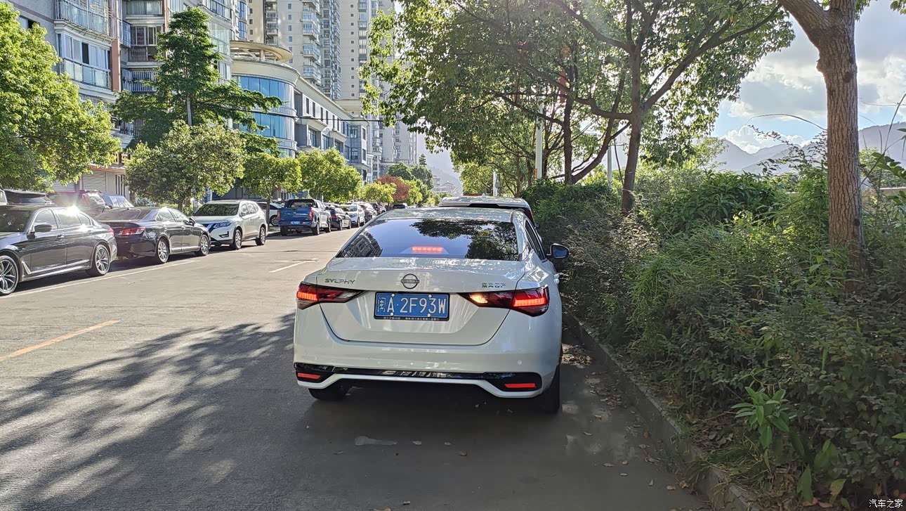 ①后备箱那里安装了倒车影像,对新手倒车起很大的帮助。重点来了!看下图,窄车位侧方停车,之前别人说驾校学的侧方停车现实生活用不上,我很不理解,不就这样停吗?事实上我忽视了车位长度与大小。 ②昨天第一次现实侧方停车,因为回来比较晚,路边停满了车,我喊我妈下次看看够不够位置,我妈说可以,于是我就开始用驾校教的侧方停车!结果停不进去,太窄了!这时候车上的雷达三级响应一直叫,最后“修修改改“终于停进去了!终于知道雷达的重要性了! ③总之,新车轩逸悦享版我很喜欢,家人也满意,可以开始有车生活了,带家人去旅行,平时下雨天接娃也很方便!