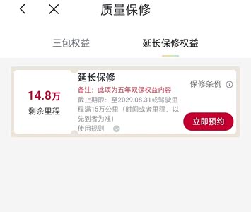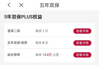 买车赠送了2次保养,分别是首保和二保。首保在2500公里或者三个月,二保是5000公里或者半年。首保的时候我里程没有2500公里,我是按时间用车3个月去的,不用花钱,只是简单的检查一下,十几分钟就好了。二保的时候就要换机油、滤芯,也是免费的,还免工时费,不过机油是普通的机油,如果要好的就要加钱去升级合成机油。我还购买了5年双保,本来质保是3年10万公里,这样延长2年和5000公里,变成5年15万公里,销售说双保要2600元,后来砍价到2000元。另外赠送了8次保养,这些都免工时费,还有基础的保养,当然换大件、易坏件都不包含在里面的。这个套餐也是相当的划算,买这个5年双保的原因主要是为了延长质保,很多汽车在过保后就容易出现这样或者那样的问题,维修起来费用就很高,有了这额外的两年质保,用车很安心。