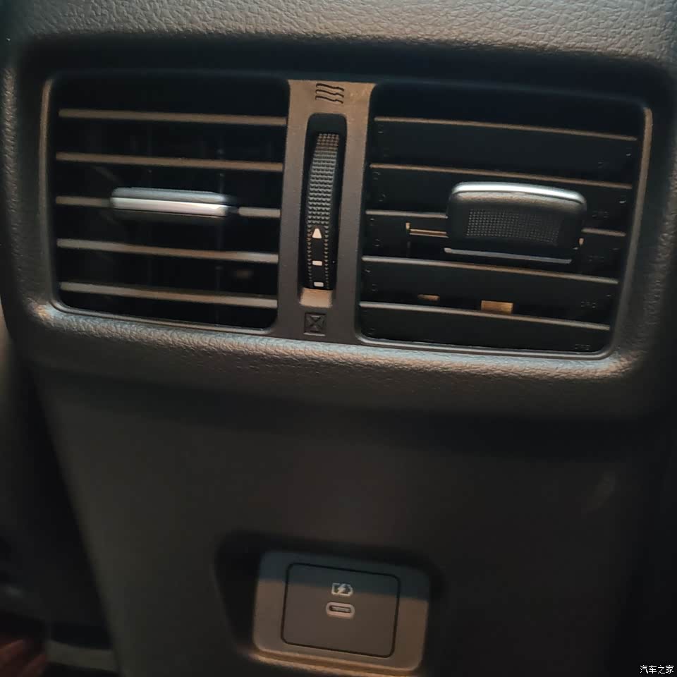 悦享版的空调是有4个,驾驶位、副驾驶位、后排中央空调,还有中控空调。 驾驶位、副驾驶位和后排中央空调都是条形的空调,可以四个方向上下左右调节,中央扶手箱空调还可以调节风速。 中控的空调造型最好看,我就是看到这三个圆圆的,被吸引了。看起来好像三个小音响呢,空调中间是旋转的按钮,竖着按键就是关闭状态,然后一点一点顺时针旋转,风速也越大。三个中控空调都可以各种开启调节,不受相互控制的。 夏天AC一直开着,启动车辆空调都是自动开启的,也可以手机提前开启空调。温度可以自己设定,也可以选择自动的,还是双区空调,两旁的空调可以随意开关,根据不同的人风量调节大小。可以对着脸吹、对着身体吹、也可以对着脚吹,都是在中控操作的。