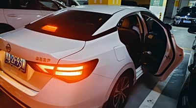 轩逸的前脸灯光是飞翼灯,以白色的灯光为主,日行灯是一条柔和的白灯,在晚上效果更好。转向灯是黄色长条灯,这是轩逸独特的,其他的车辆大多是圆灯。刹车灯在车尾,一般和挡风玻璃上的灯一起亮的。也是以条状为主,红色的灯光特别的显眼。示廓灯的颜色比刹车灯还要暗,还是可以识别到的。后视镜也有一个闪灯,通常是车辆解锁才会闪一下。 后备箱车牌处居然也有灯光,有的说是夜间照亮车牌,便于识别,晚上的车牌照的非常的清楚,还有的说是辅助倒车影像的,晚上停车更方便。雾灯和倒车灯比较独特,都只有一个,左边菱形的是后雾灯,右边菱形的是倒车灯。 晚上的LED远光灯特别的亮,照射的范围特别广,在没有路灯的道路上,指导前进的方向。 除了这些常用的灯,我的车还有氛围灯,那就是前脸的流光灯,虽然是白色的,但是晚上的时候也挺好看,还有车门下的灯,圆圆的,跟摄像头一样,应该就是是迎宾灯了。