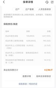 保险总共花钱4288元,第一年是4S店强制购买的,买的全险,交强险是必须要买,保费960元,包含死亡伤残、财产损失、医疗费用。死亡伤残保费475元,保额18万,医疗费用保费285元,保额1.8万,财产损失保费190元,保额2000元。 另外商业保险约2780元,包含车损险、三者险、驾意险、座位险与医保外责任险。车损险保费约1637元,10万保额。三者责任险保费约965元,400万保额。驾乘险保费约23元,1万的保额。座位险保费约60元,保额按条款规定执行。最后一个也是比较重要的是医保外医疗费用责任是共享的保额,保费约94元。 还有2个强制购买的燃气险100元和个人出行意外险380元。第一年保险费比较贵,第二年可以自行选择。三者险是交强险的补充,至少也得买200万的保额,有经济条件可以买300万的保额,开车上路也安心。不能因为贵而存有侥幸不买,万一事故,不至于没钱赔偿。
