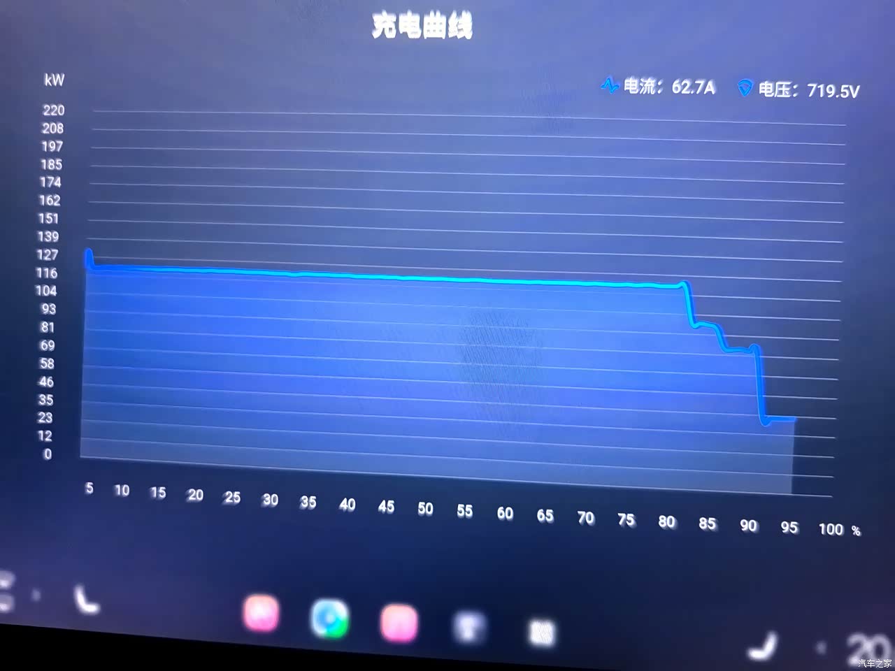 在高速120的国网桩从6%充到95的充电曲线,多少时间没注意,80%之前都是吃满120功率的,95%之后也有四十千瓦