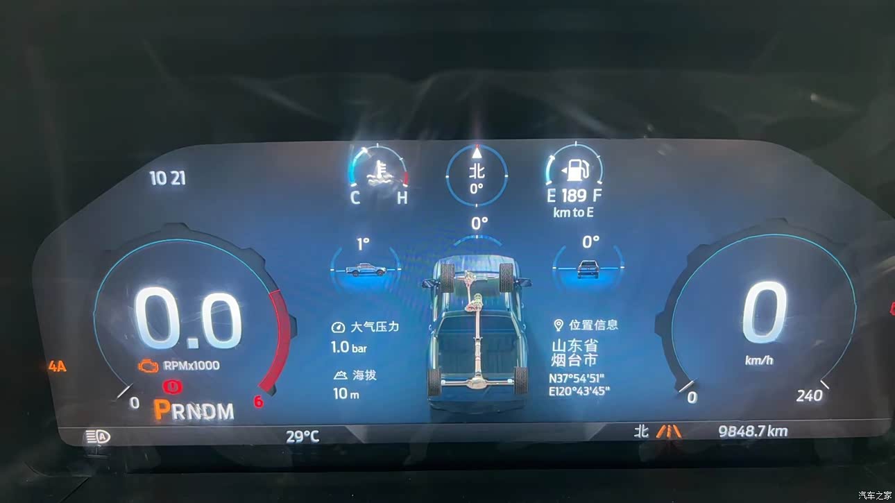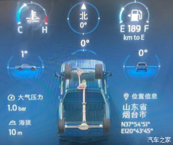 仪表盘可以显示车辆侧倾角度 爬坡角度 很实用