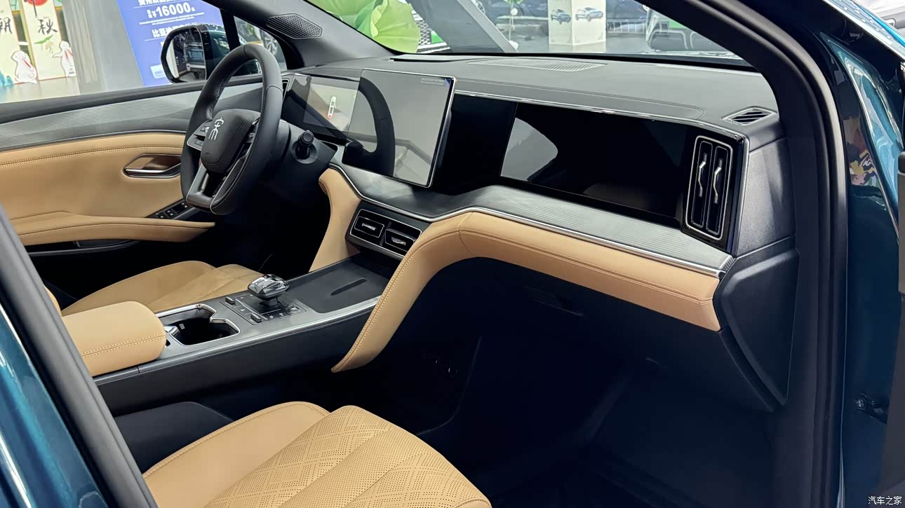 豪华与舒适的完美结合 内饰设计风格 1. **环抱式智能座舱** 进入车内,宋L DM - i的内饰设计给人一种强烈的豪华感和科技感。环抱式智能座舱的设计理念,将驾驶者和乘客包裹在一个舒适的空间内。中控台向驾驶员一侧倾斜,方便驾驶者操作各种控制按钮和中控屏幕。 2. **高品质材料的运用** 内饰采用了大量的高品质材料,座椅采用了真皮材质,触感柔软且透气性好。中控台、车门内饰板等部位则使用了软性材质进行包裹,并搭配精致的缝线工艺,营造出一种温馨而豪华的驾乘氛围。 乘坐空间体验 1. **宽敞的前排空间** 作为一款中型SUV,宋L DM - i的前排空间非常宽敞。驾驶位和副驾驶位都提供了充足的头部空间和腿部空间,即使是身材高大的驾驶者也能轻松找到舒适的驾驶姿势。座椅的调节功能丰富,包括座椅的前后、高低、靠背角度以及腰部支撑等调节,满足不同驾驶者的需求。 2. **舒适的后排空间** 后排空间同样表现出色,后排乘客能够享受到宽敞的腿部空间和头部空间。后排座椅的舒适度较高,坐垫长度适中,能够很好地支撑乘客的腿部。此外,后排还配备了独立的空调出风口、充电接口等实用设施,提高了后排乘客的乘坐舒适性。
