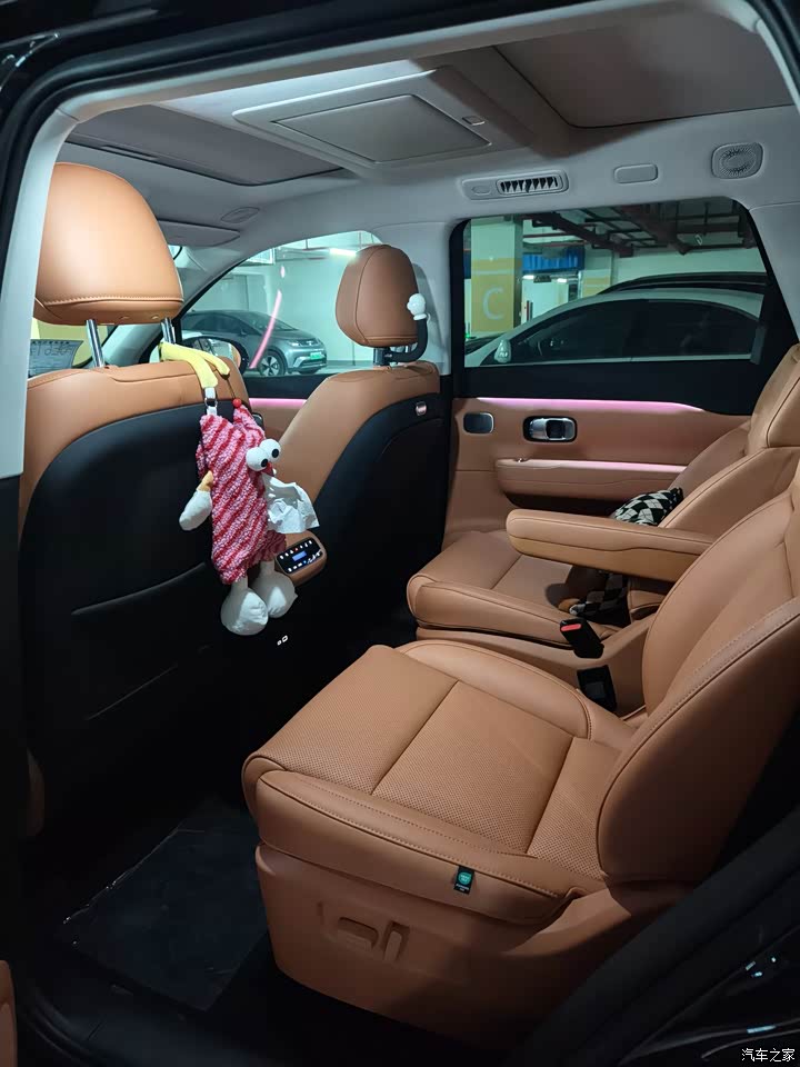 2+2+2 的六座布局,二排乘坐空间宽敞,第三排能放倒的斜度也能提供较好的乘坐体验。储物能力还可以,大大的扶手箱空间,买了双层置物架,杯架也够多,一二三排都有,六个杯架非常棒