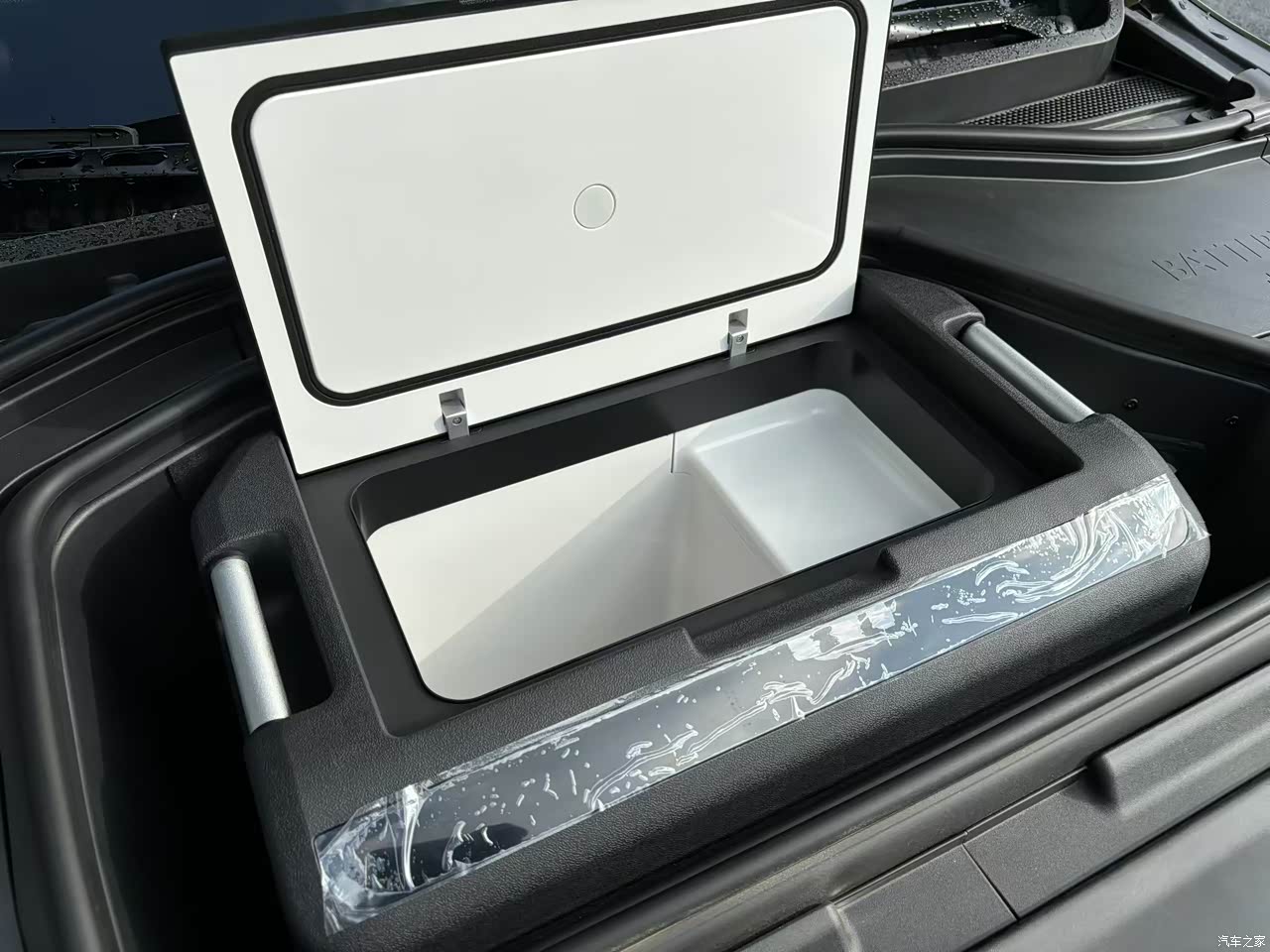 后斗可以放很多东西,大件小件都没有问题,车里有固定的卡扣,不用担心东西晃荡或者掉出来。 前面也有一个小空间,有插座,可以定制一个小冰箱在里面,哈哈,出去玩的话可以喝冷饮啦。 座椅还是很软的,头顶的天窗也可以打开,这个车的可玩性很多。