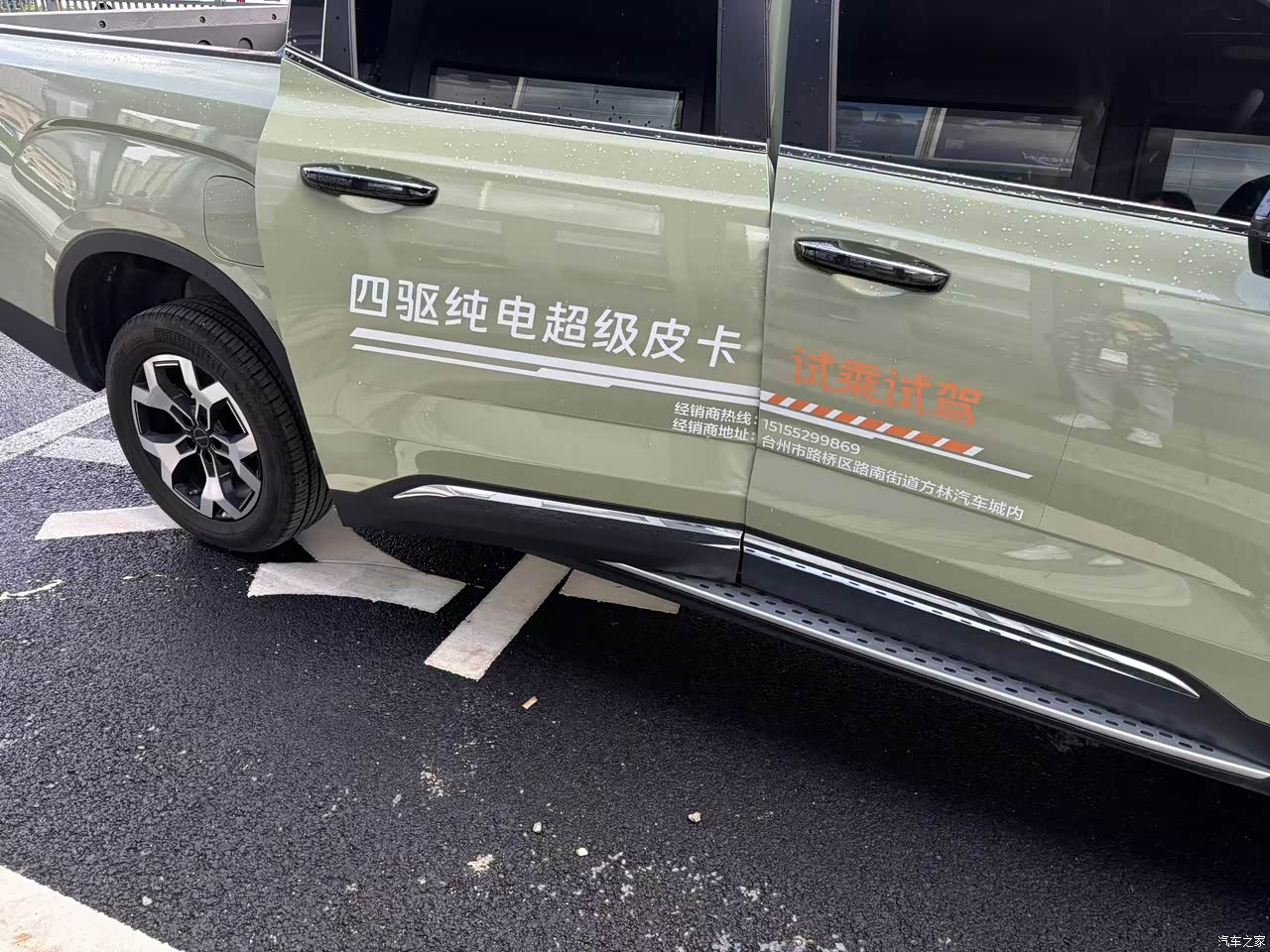 在台州车展上,看到这台帅气的电皮卡,去试驾了一下,最满意的地方还是外观,跟其他皮卡不一样,很帅气时尚,尤其是前面的大脸,上面的字母看着就很大气,跟车整体很协调。