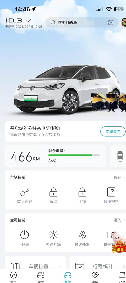 虽然ID.3提供了可观的续航里程选择,续航里程已经相当出色,平均续航在380上下,还是可以的。现在充电装也到处很方便充电,一般平时上下班开,不出市里一周左右充一次电就可以,不得不说真是节省不少一比开支。